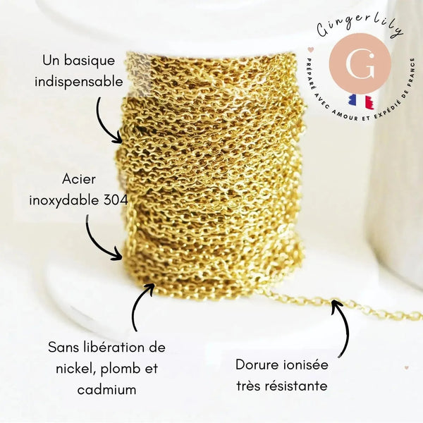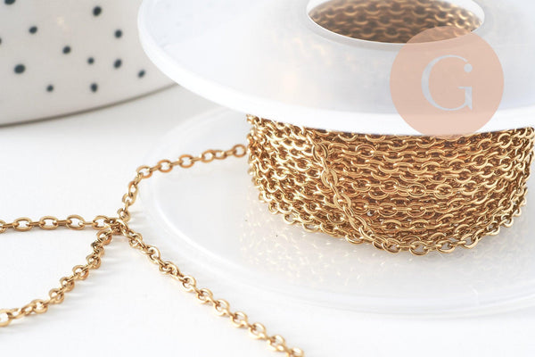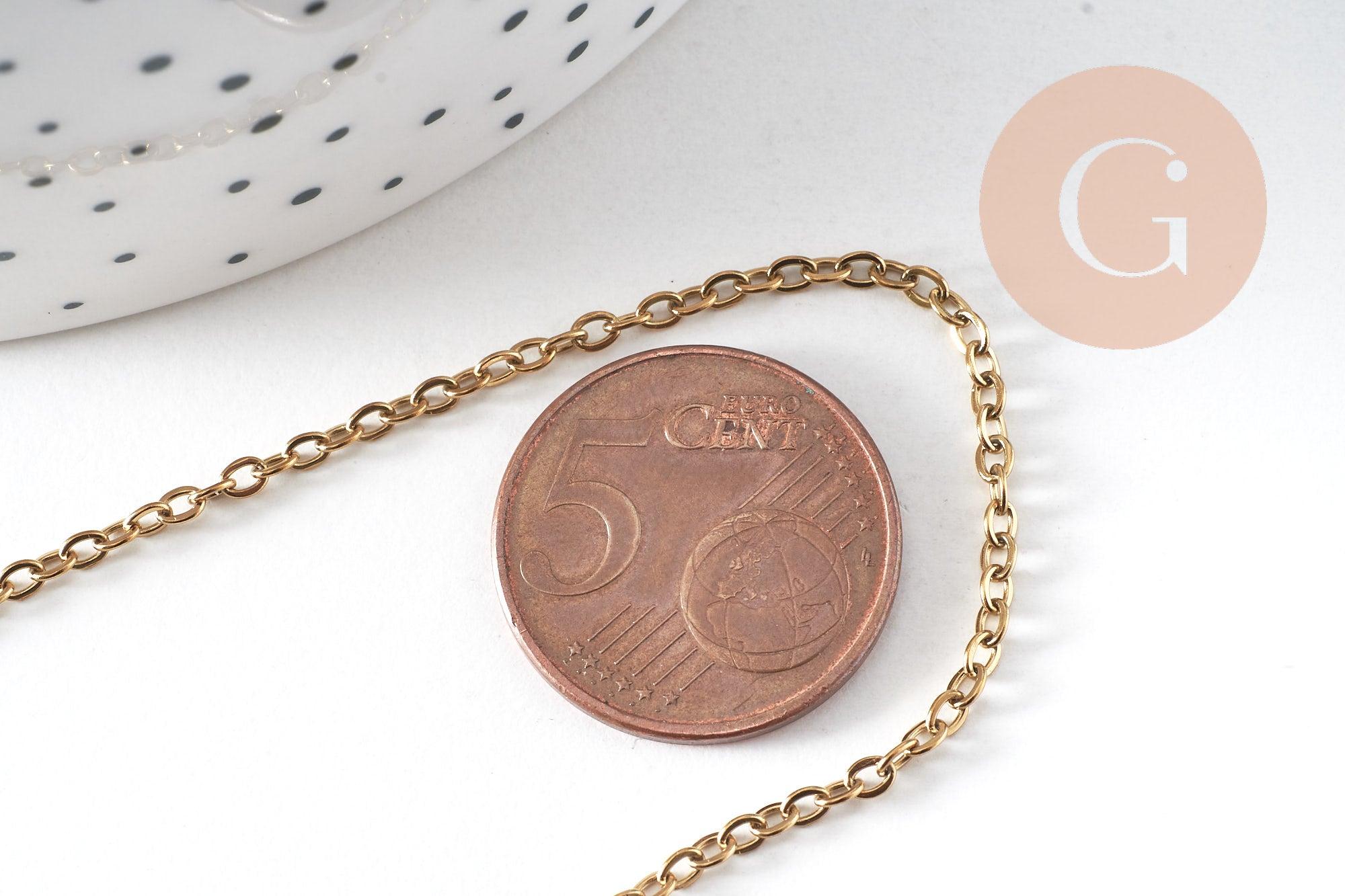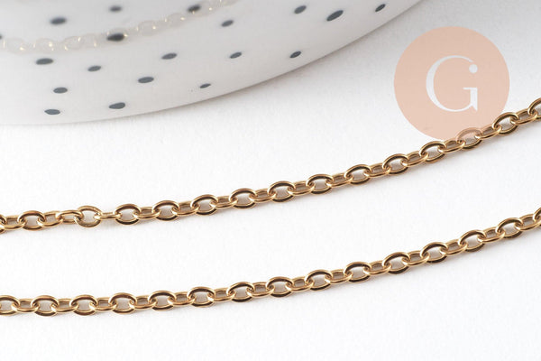 Añade un toque brillante y atemporal a tus creaciones con esta cadena plana de eslabones en acero inoxidable chapado en oro 304 IP 14K .