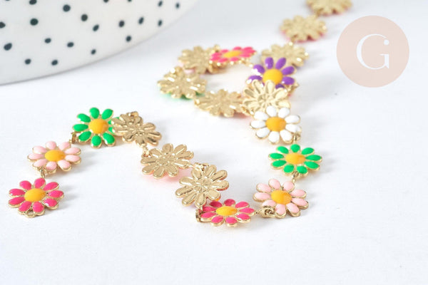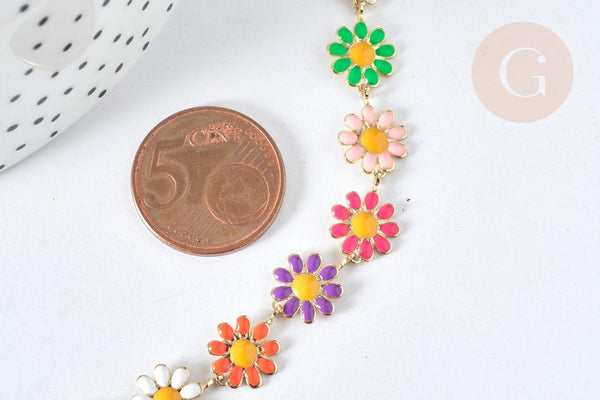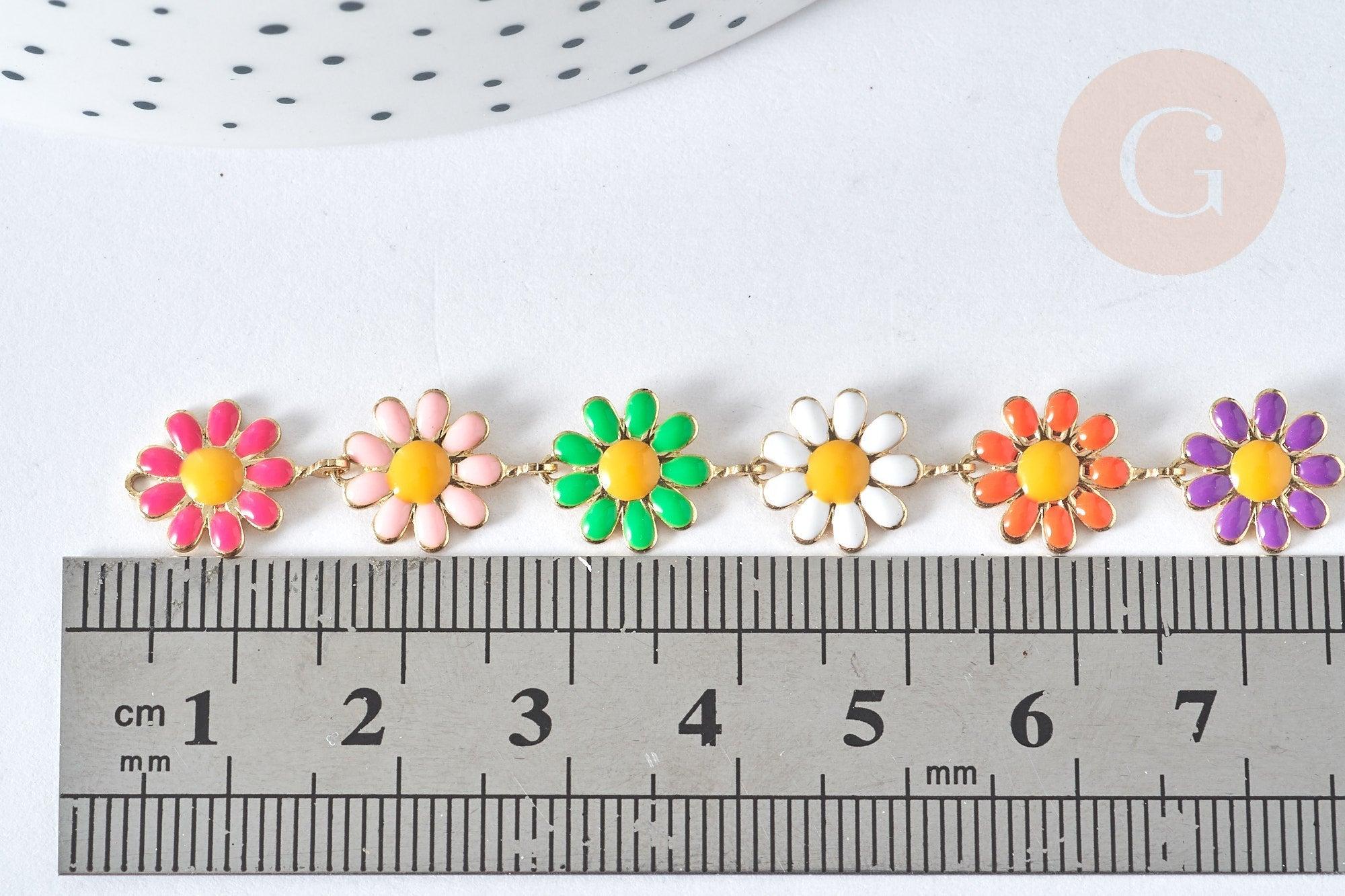 Para tus muchas creaciones de joyería DIY , adopta esta elegante cadena de margaritas en latón dorado con un acabado de esmalte de color .