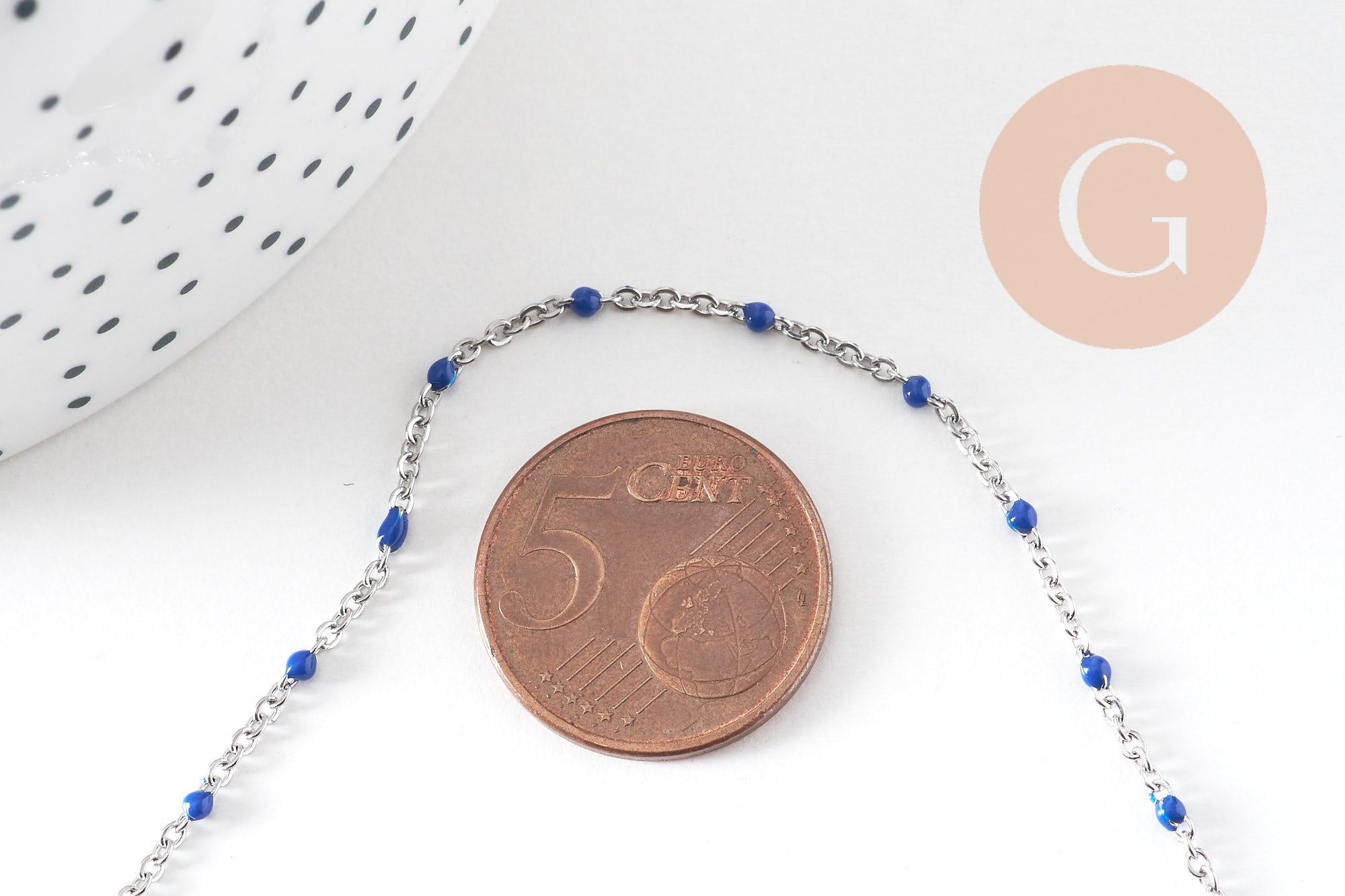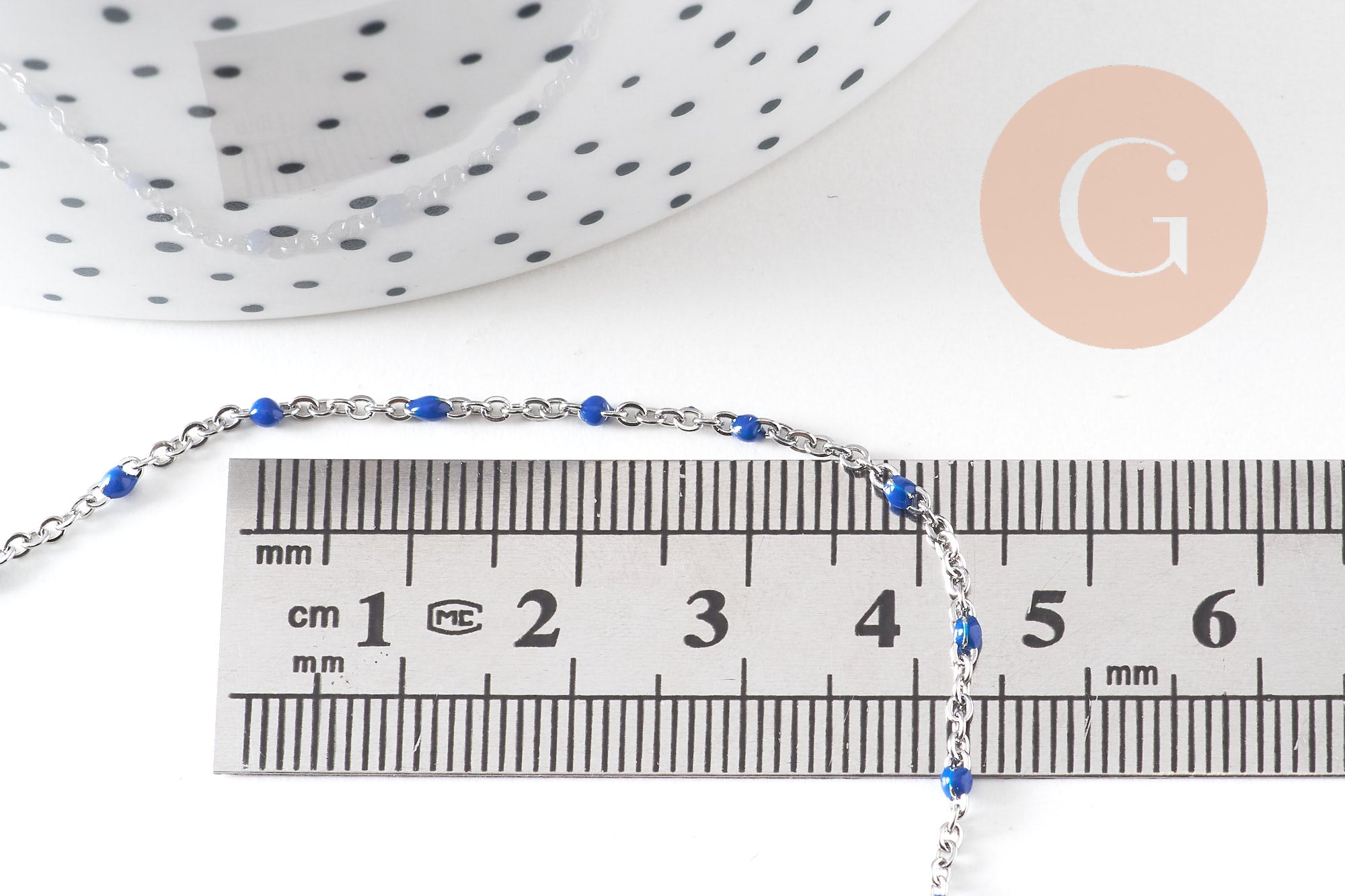 Cadena acero plata, resina azul, cadena collar, cadena fantasía, cadena sin níquel, cadena completa, 2mm, 45cm, x1 G1216