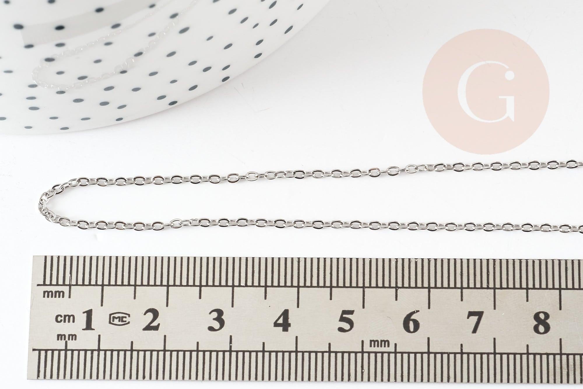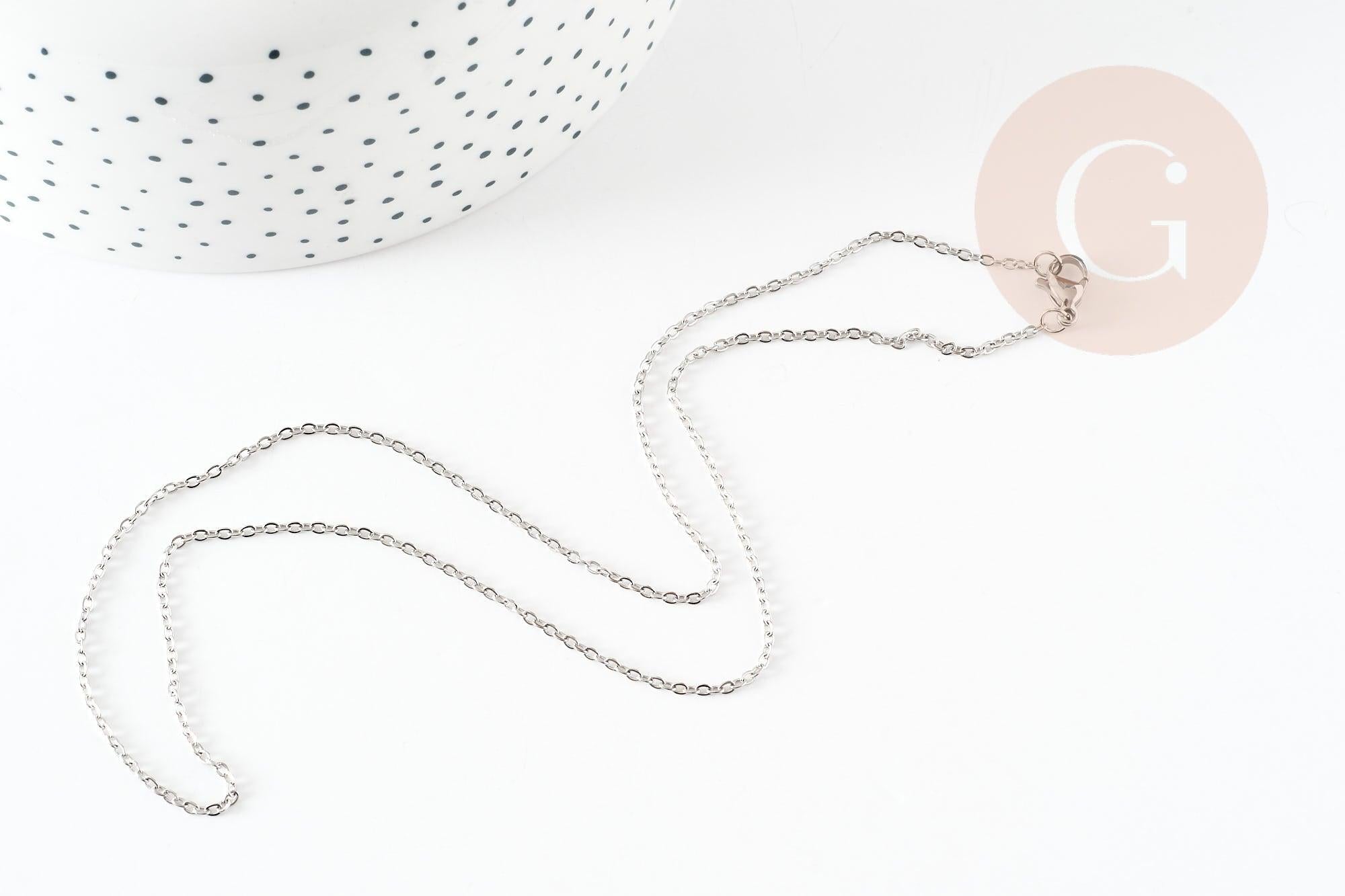 Cadena de convicto completa de acero inoxidable 1,5 mm-45 cm, cadena de acero plateada con cierre, cadena de collar plateada, x1 G9302