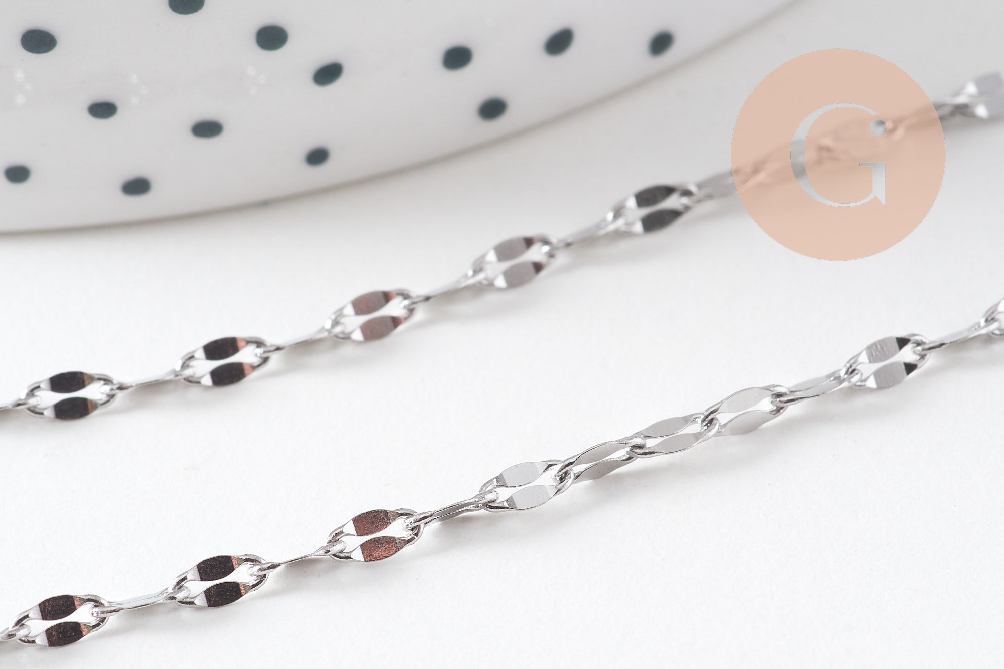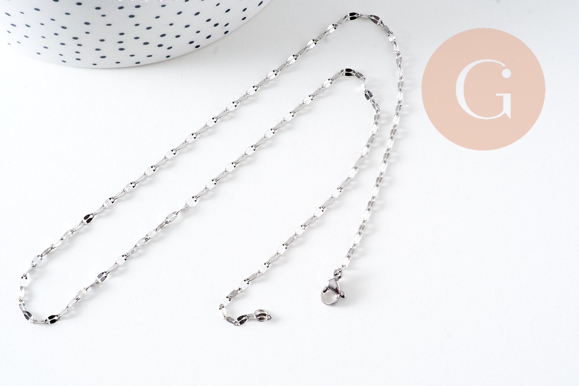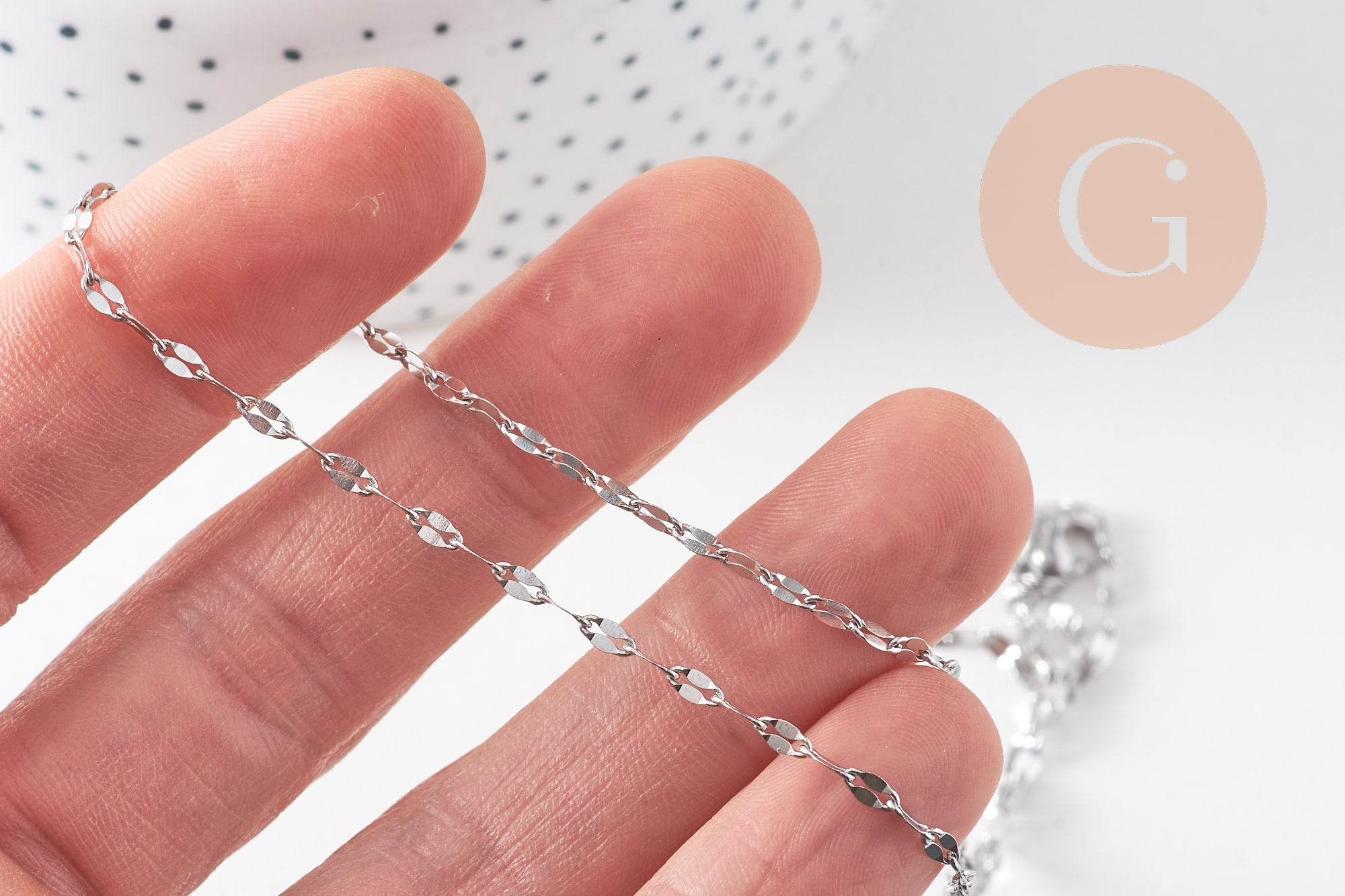 Cadena completa ovalada de platino, cadena de acero, cadena sin níquel, cadena de collar, creación de joyas, cadena de plata, 45cm