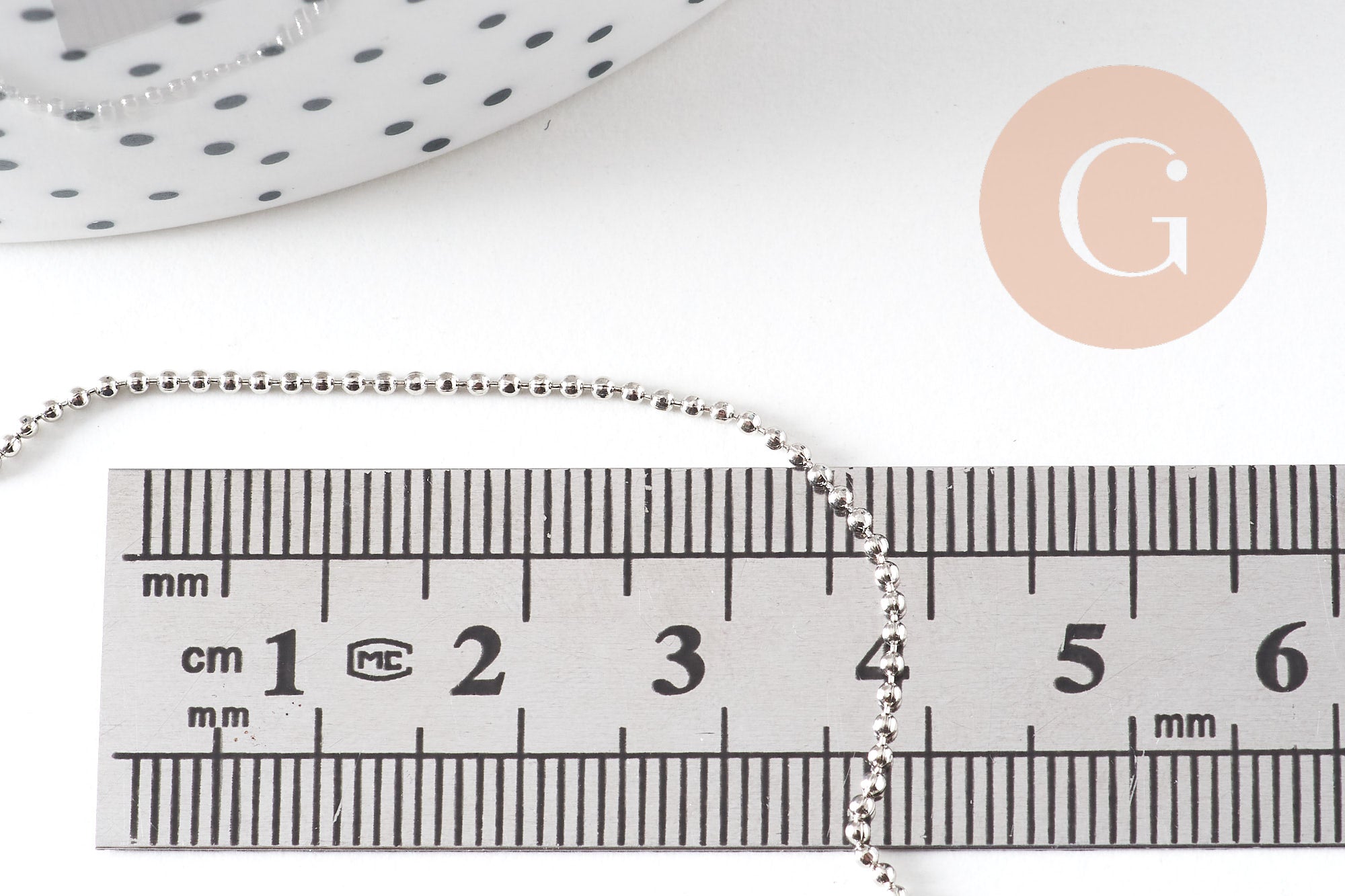 Una cadena de bolas facetadas de color platino (plata) que se vende completa con cierre.