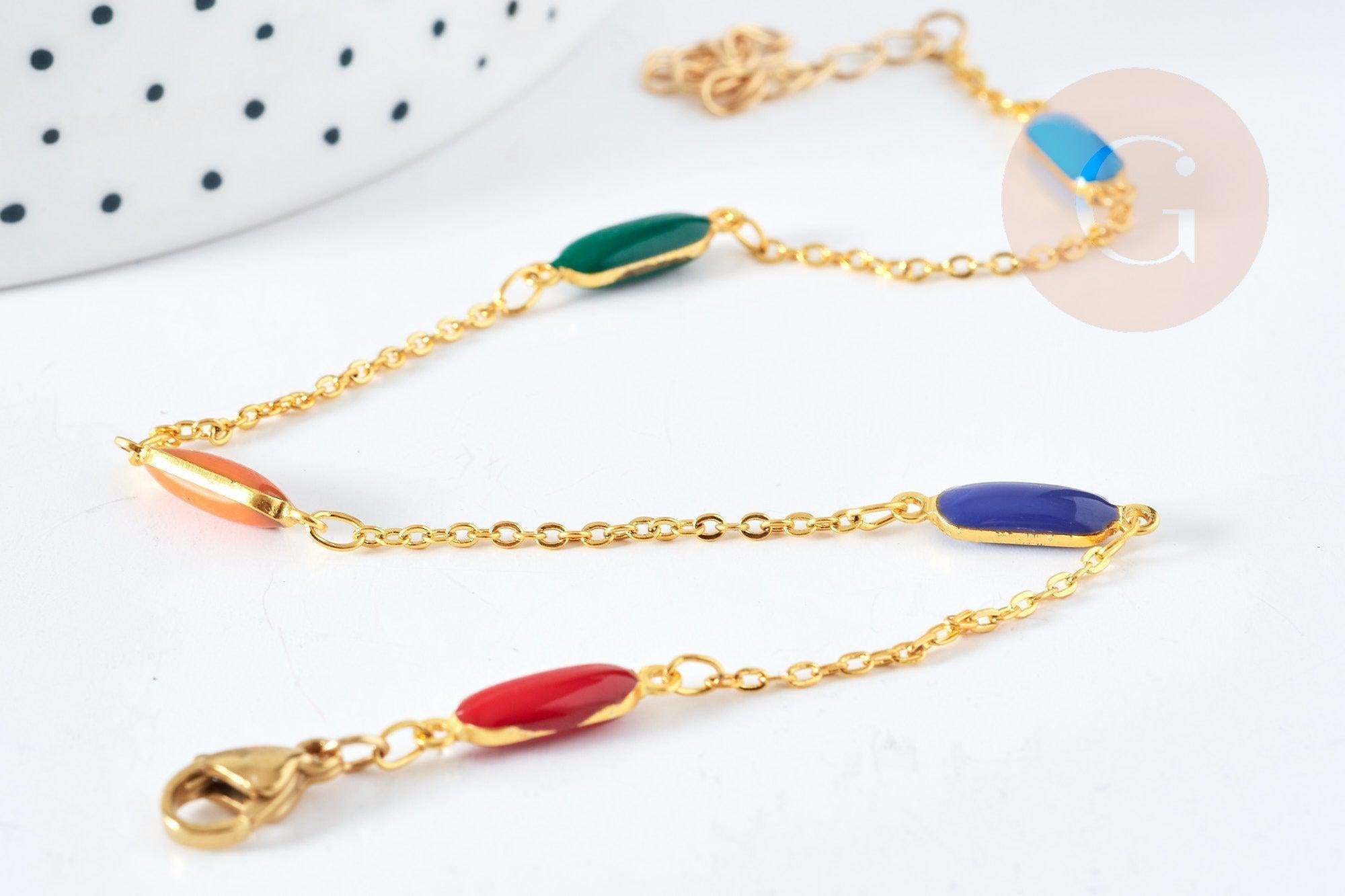 Fabricada en latón bañado en oro y esmaltado, esta pulsera de tobillo es estética. El cierre de langosta garantiza un ajuste seguro alrededor del tobillo.