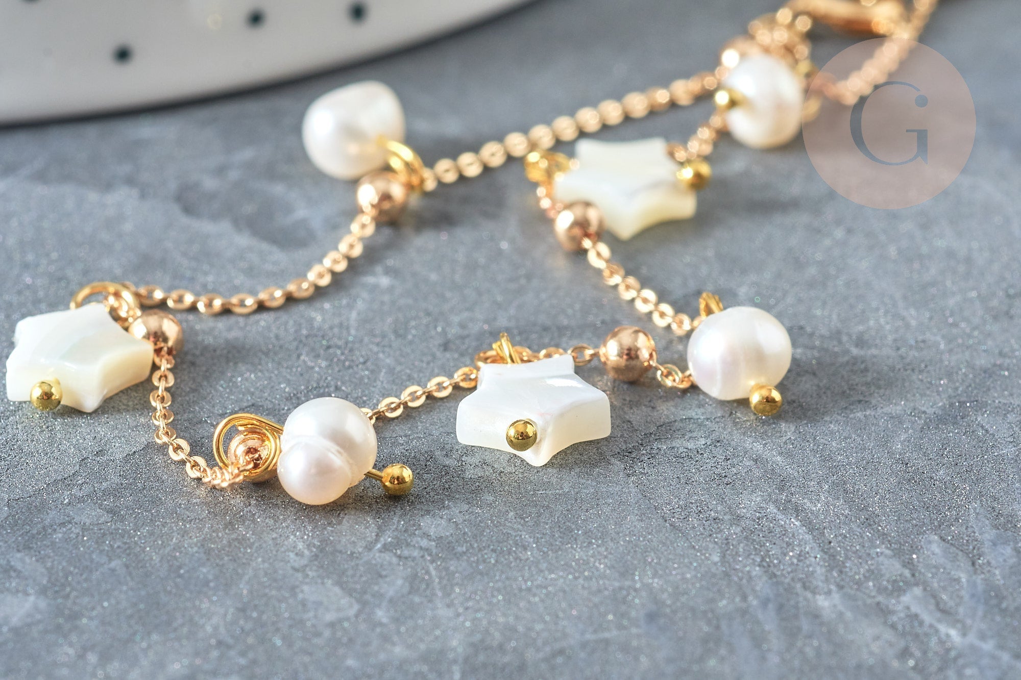 Esta tobillera está adornada con estrellas de nácar blanco y perlas auténticas de agua dulce , también blancas. Éste ya está equipado con un mosquetón para facilitar la fijación. Colócalo en tu tobillo y combínalo fácilmente con todos tus outfits.