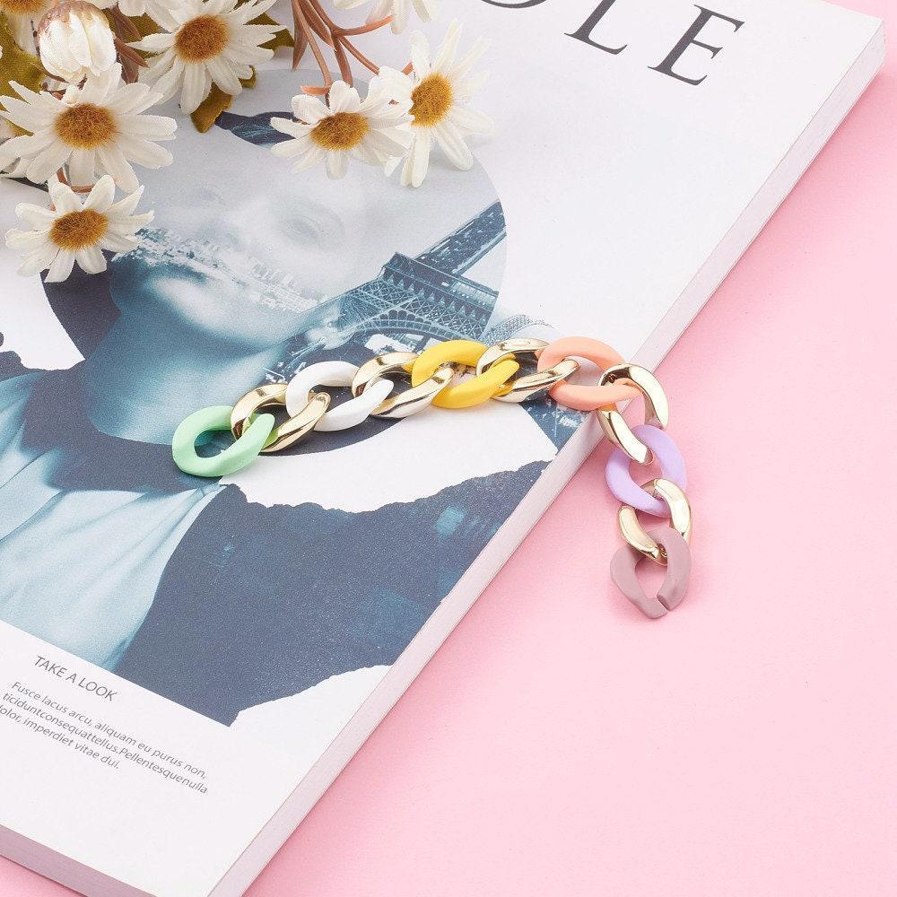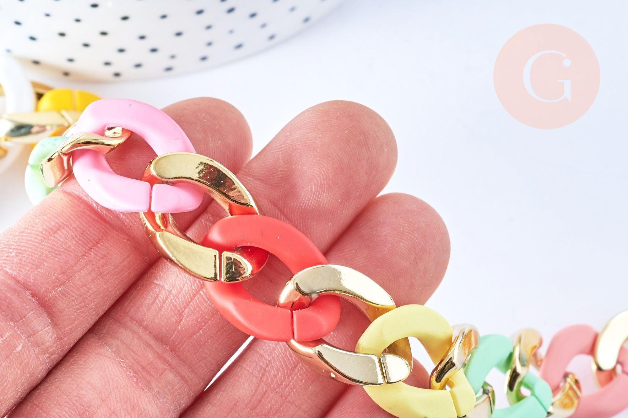 Una gran cadena de plástico acrílico en colores pastel y eslabón de aluminio dorado para crear joyas modernas y originales.