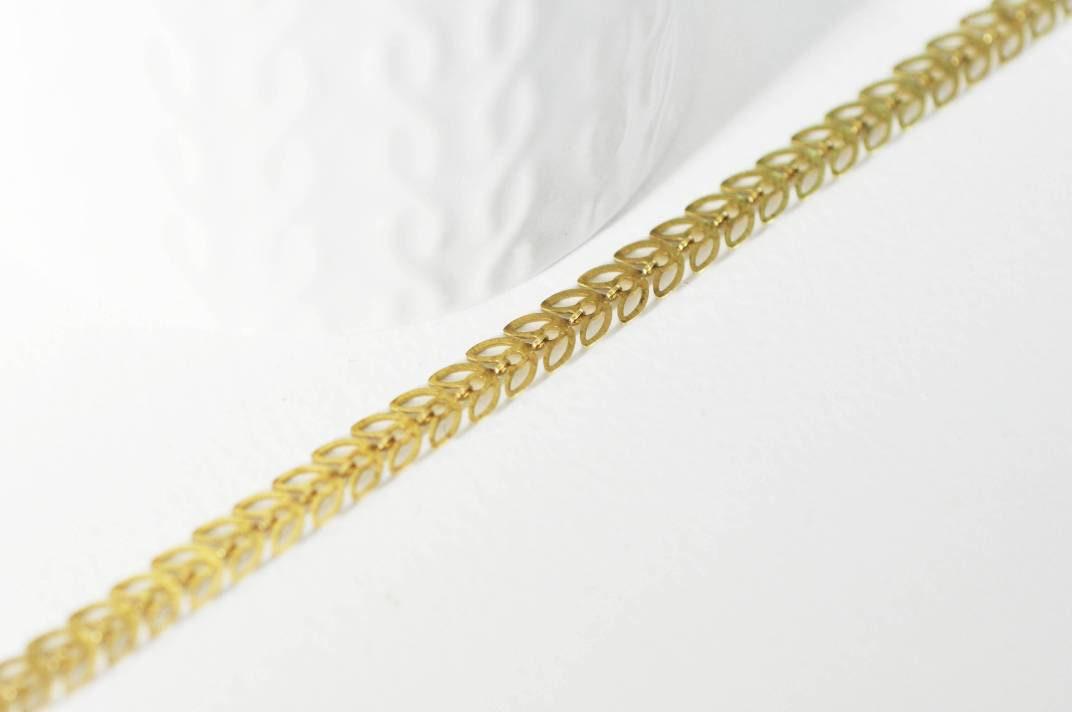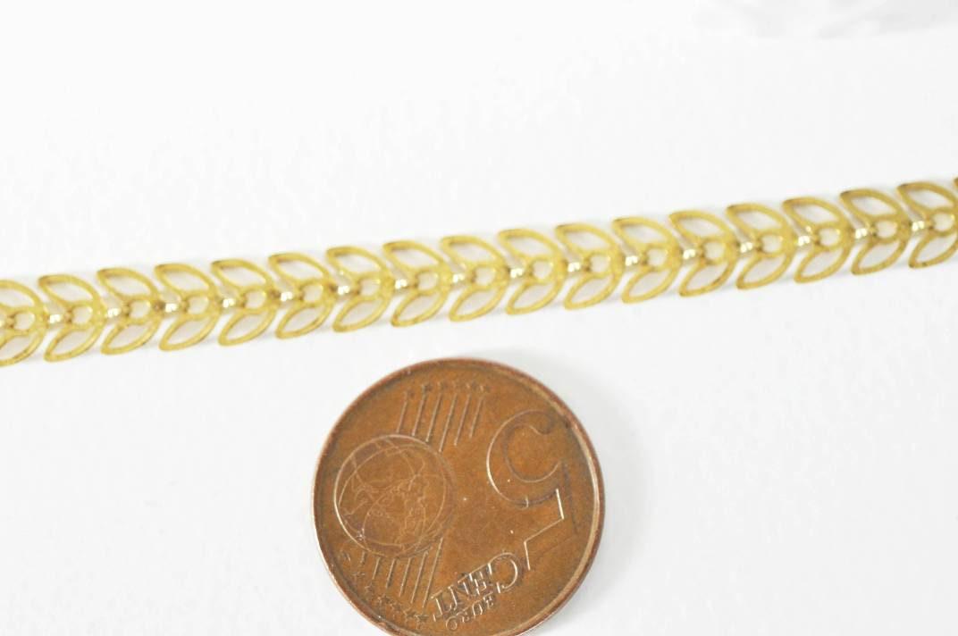 Cadena de chevron de latón crudo, suministro creativo, cadena de joyería, creación de joyas, cadena elegante, sin níquel, mayorista, 6 mm, 100 cm Una cadena de espina de pescado, en malla de chevrón ahuecada de latón en bruto. Una cadena...
