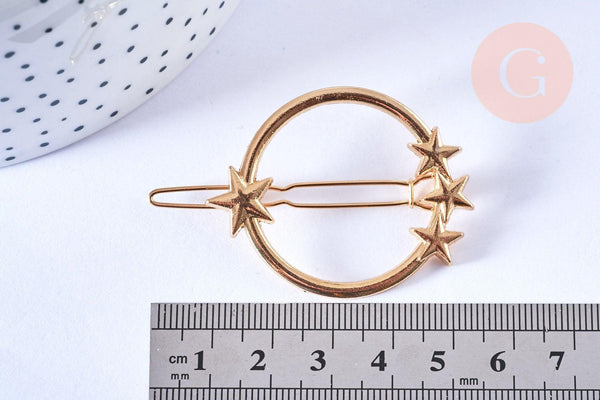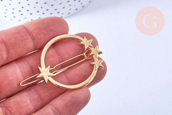Un pasador con forma de estrella de metal dorado, que se puede adoptar inmediatamente para realizar pasadores para el cabello personalizados ;