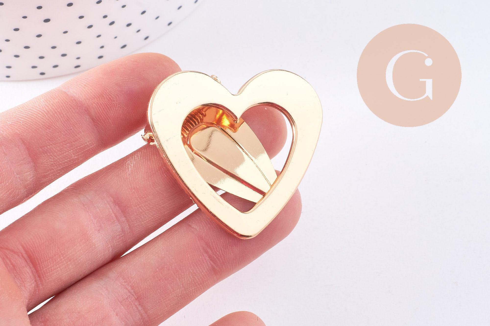 Support barrette coeur zamac doré 40mm, x1 (G10688)