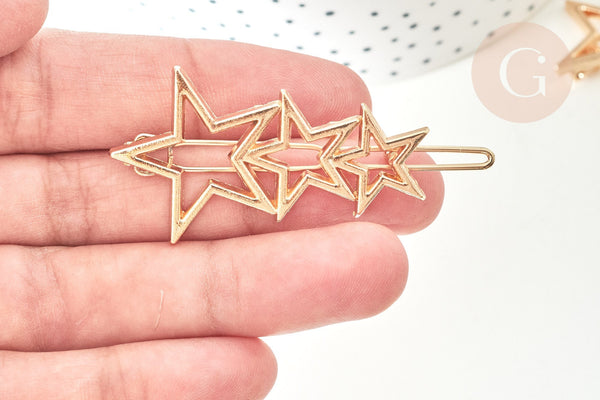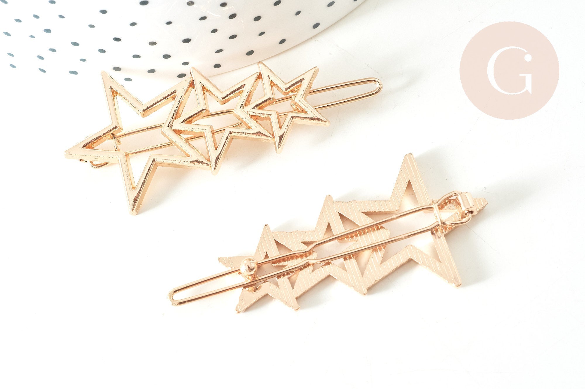 Un pasador con forma de estrella de metal dorado, que se puede adoptar inmediatamente para realizar pasadores para el cabello personalizados ;
