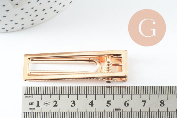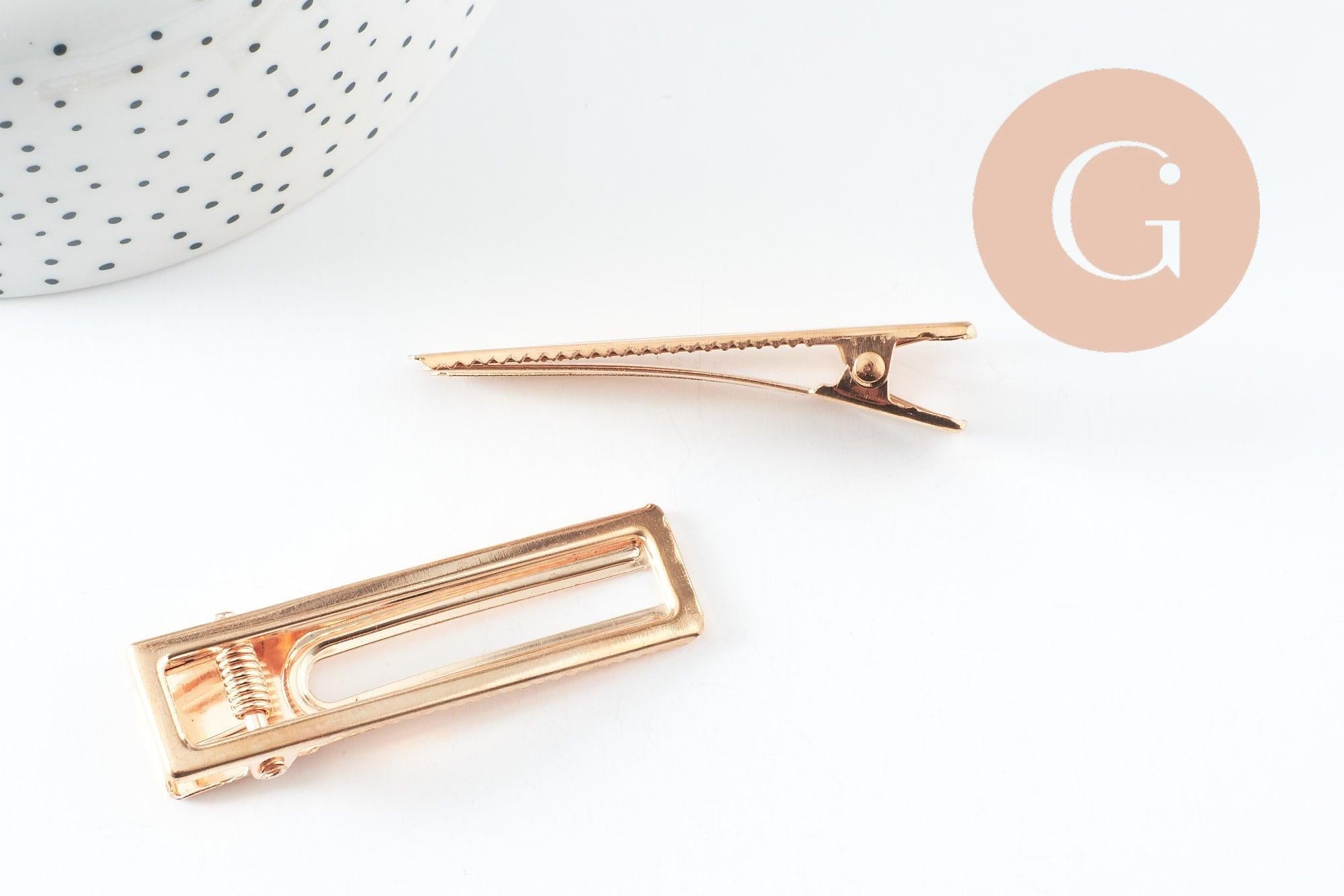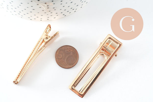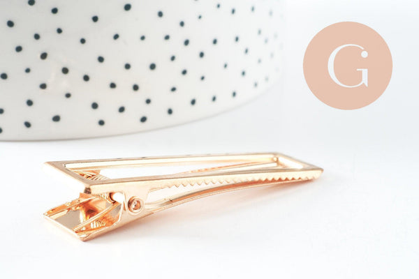Un pasador de cocodrilo rectangular de metal dorado , que se puede adoptar inmediatamente para realizar pasadores para el cabello personalizados;
