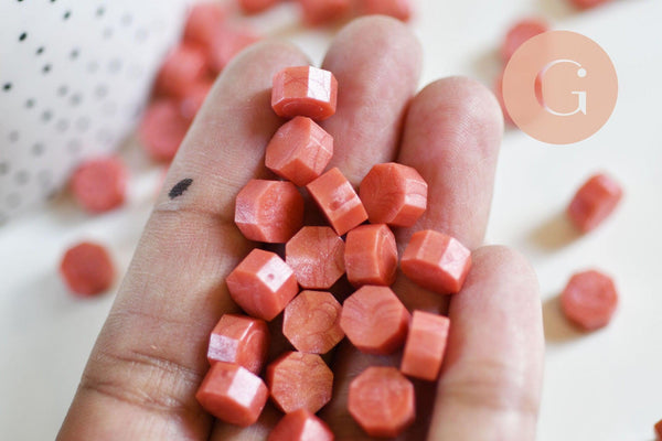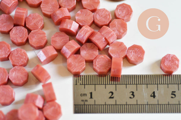 Granulés cire rose corail nacré à cacheter, fourniture création sceaux personnalisés pour sceaux et invitations de mariage, x100 (G6284)
