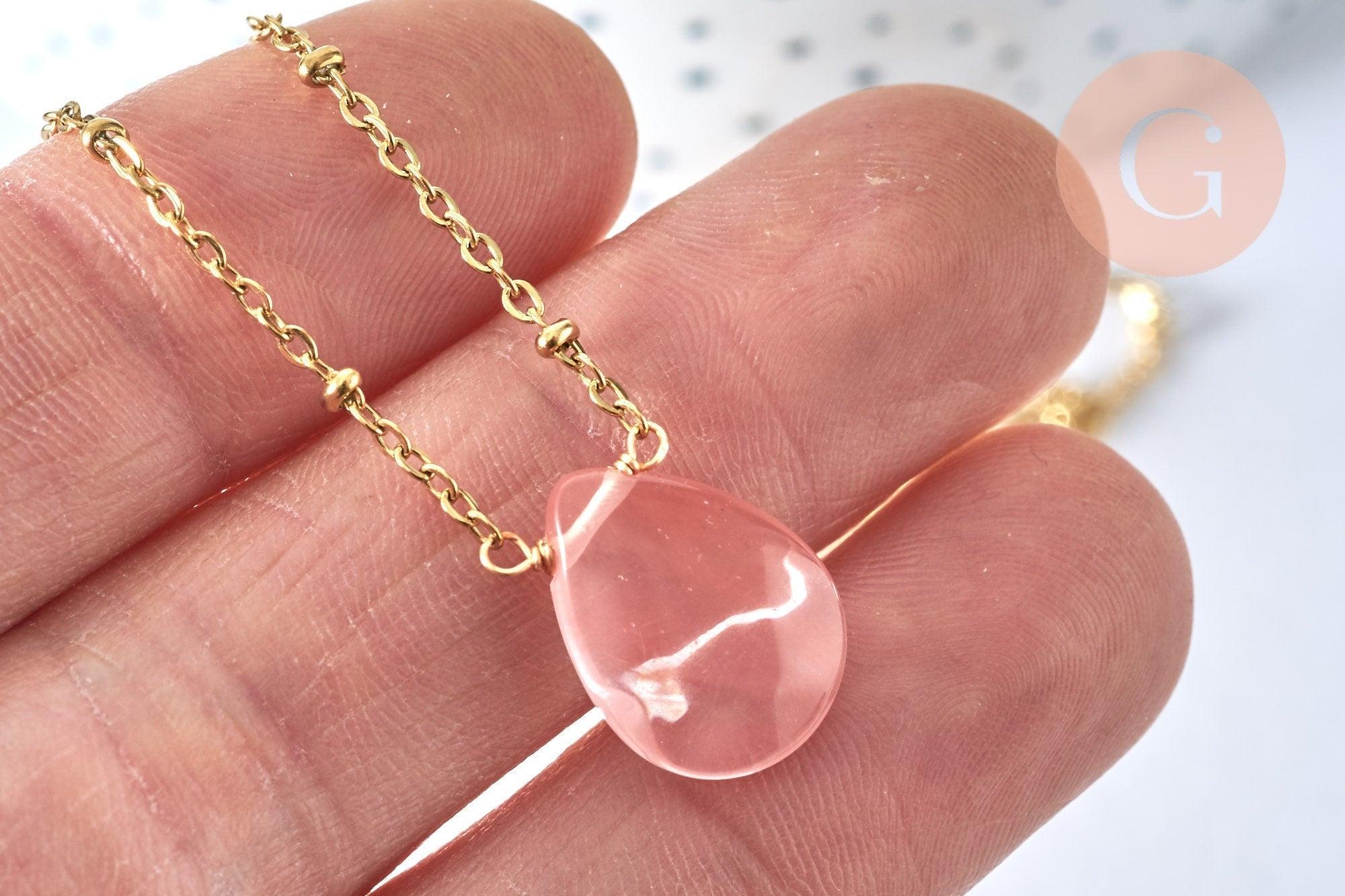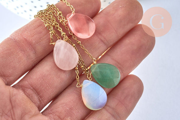 Colgante de piedra de cadena de oro fino, idea de regalo, collar de cadena de acero inoxidable, 1,5 mm, 38,5 cm, x1 G5900