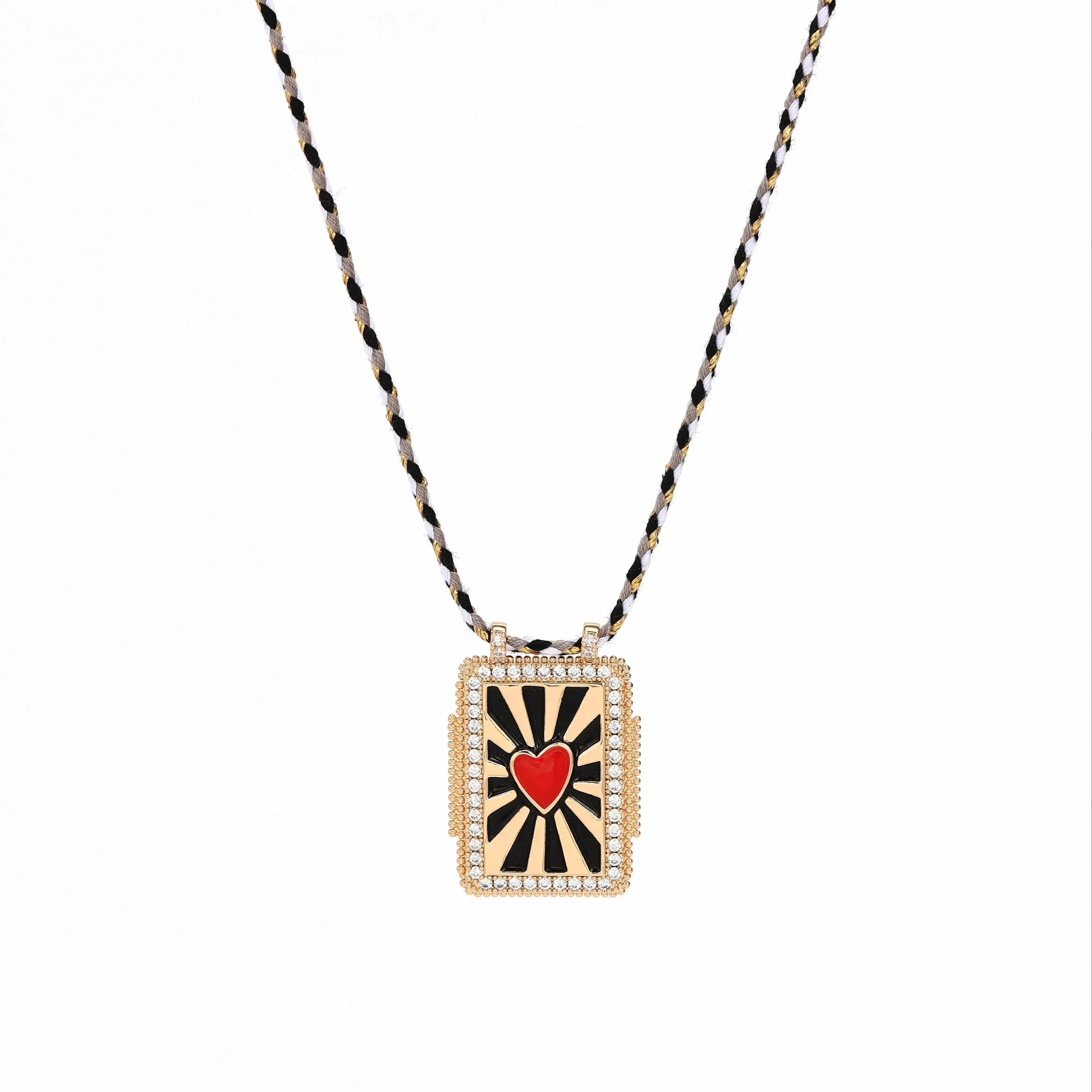 Collar con medalla de esmalte psicodélico en forma de corazón rojo con cordón trenzado de zamac bañado en oro de 45 cm x 1 (G10364-10)