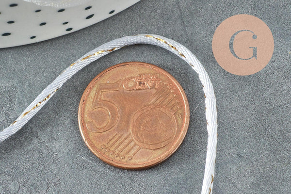 Para realizar sus joyas, accesorios, bolsos y ropa o para álbumes de recortes y otros pasatiempos creativos, le ofrecemos 1 metro de cordón de nailon gris claro realzado con un hilo dorado.