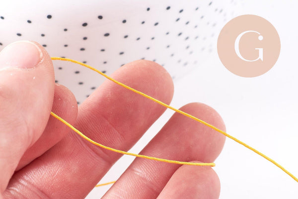 Este cordón trenzado de poliéster amarillo de 0,6 mm es perfecto para tus proyectos de joyería, macramé o costura creativa. Fino y resistente, es ideal para crear pulseras, collares y dijes, o para anudar cuentas y colgantes.