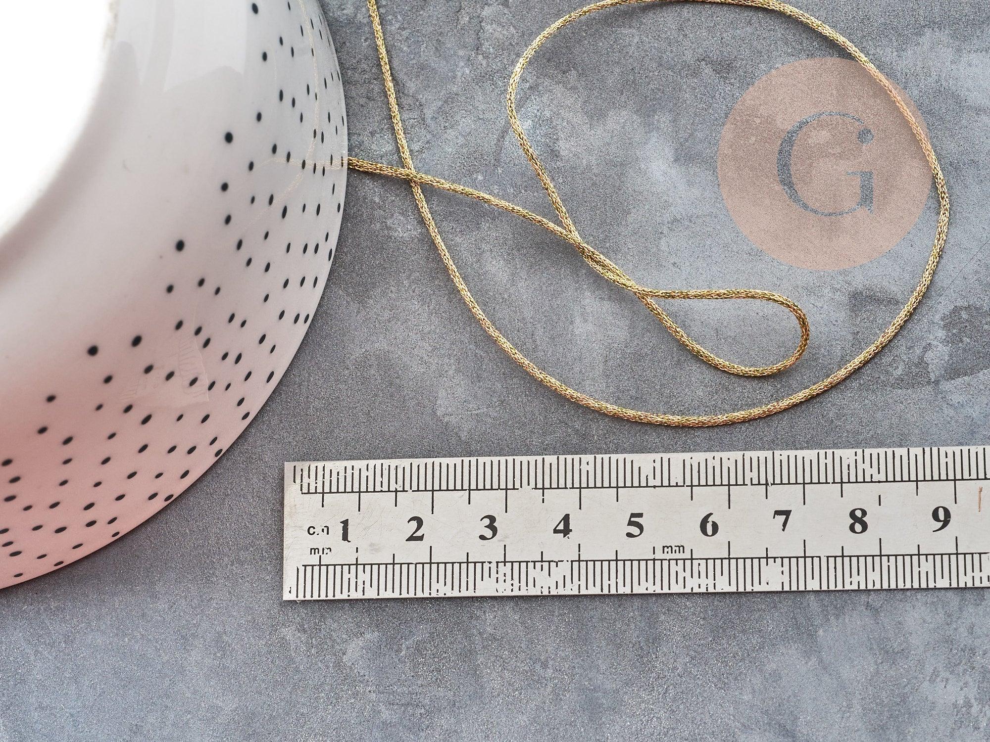 Cuelga este cordón trenzado dorado en un bonito conector o colgante para hacer una original pulsera DIY . Añade puntas de cordón y un broche para sujetarlo a tu muñeca. Haz varios para usarlos en acumulación.