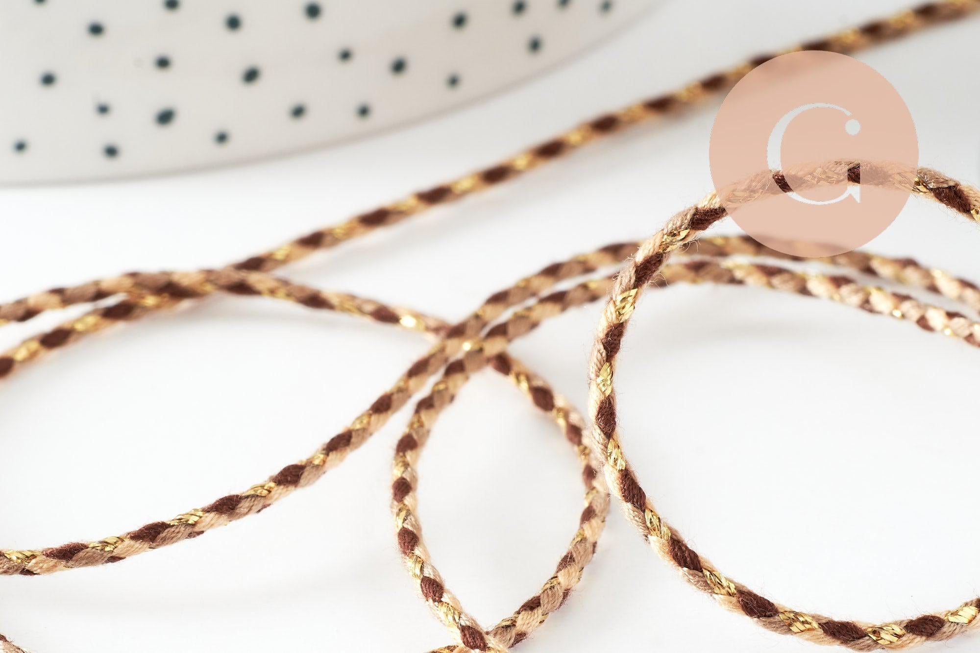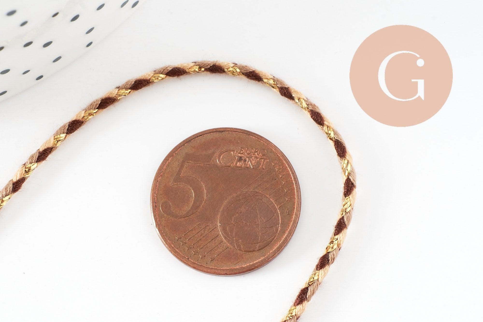 Dale un toque natural y elegante a tus creaciones con este cordón trenzado de poliéster en tonos topo, marrón, beige y dorado . Fino y refinado, este cordón de 1,5 mm de grosor es perfecto para tus proyectos de bisutería , pero también para... Accesorios, ropa, scrapbooking y otras aficiones creativas.