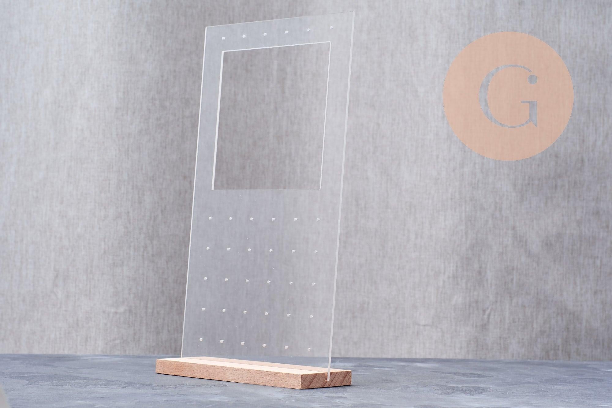 Muestra tus aretes con elegancia con este soporte de exhibición de plexiglás y madera , diseñado para albergar hasta 36 pares de aretes .