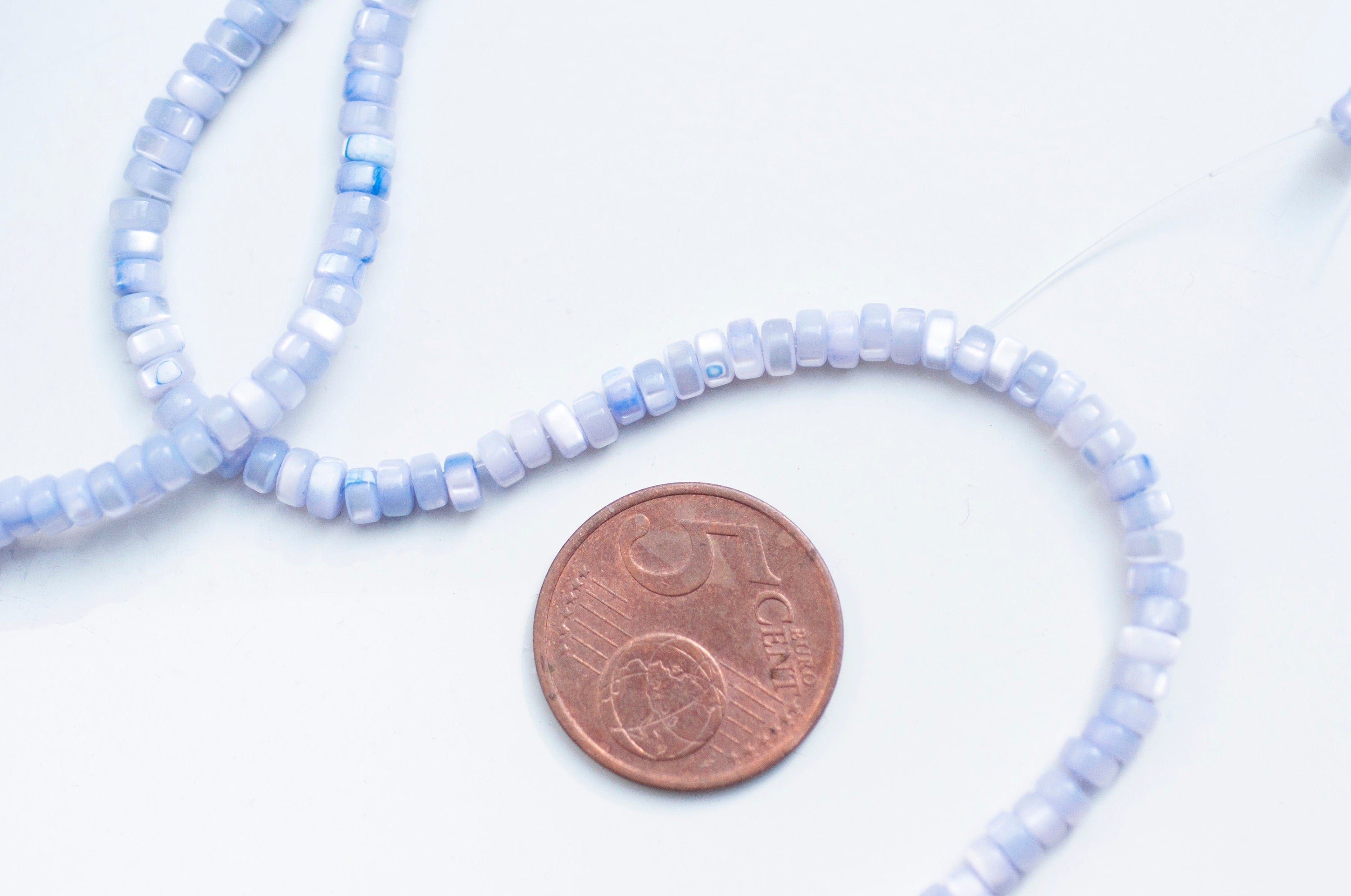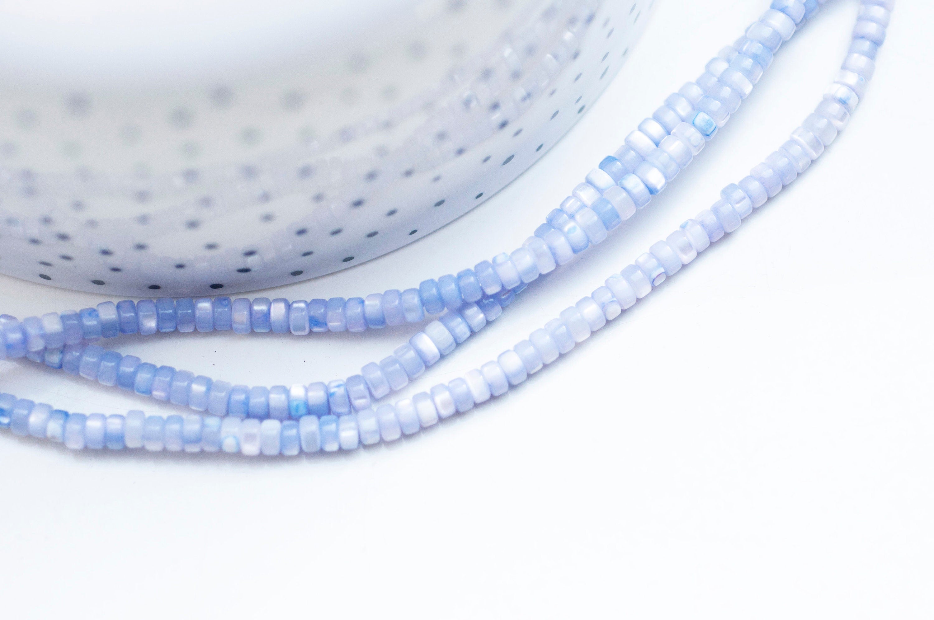 perla natural de nácar heishi púrpura pastel, tubo de concha de colores, perla de concha, creación de joyas, 2x4 mm, hilo de 185 perlas 1 hebra completa de cuentas heishi rondelle de nácar morado pastel (aproximadamente 38 cm) Un buen...