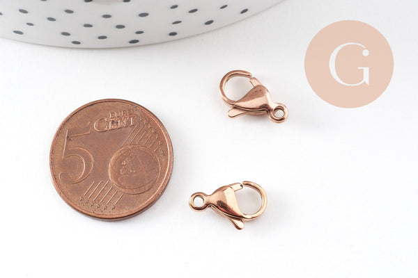 Fermoirs mousquetons acier 304 inoxydable or rose IP 13mm, x5 (G10893)