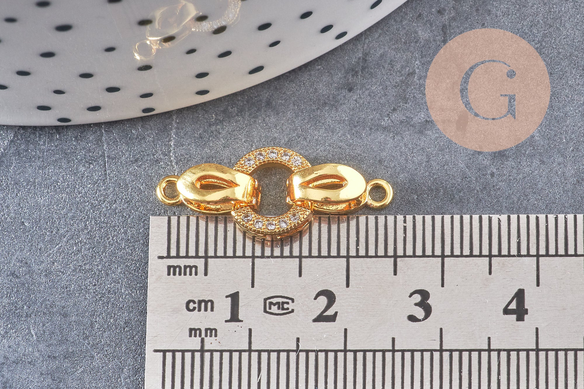 Cierre de clip, anillos de latón bañados en oro de 18 quilates, diamantes de imitación, 25,5 mm, x1 (G2996)