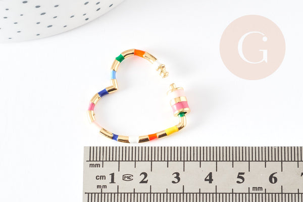 Cierre de tornillo de latón dorado de 16k corazón colorido a rayas, cierre de gran calidad, cierre dorado, cierre de candado, fabricación de joyas, unidad, 30,5 mm Un cierre de rosca de latón dorado para sus collares, pulseras y collares:...