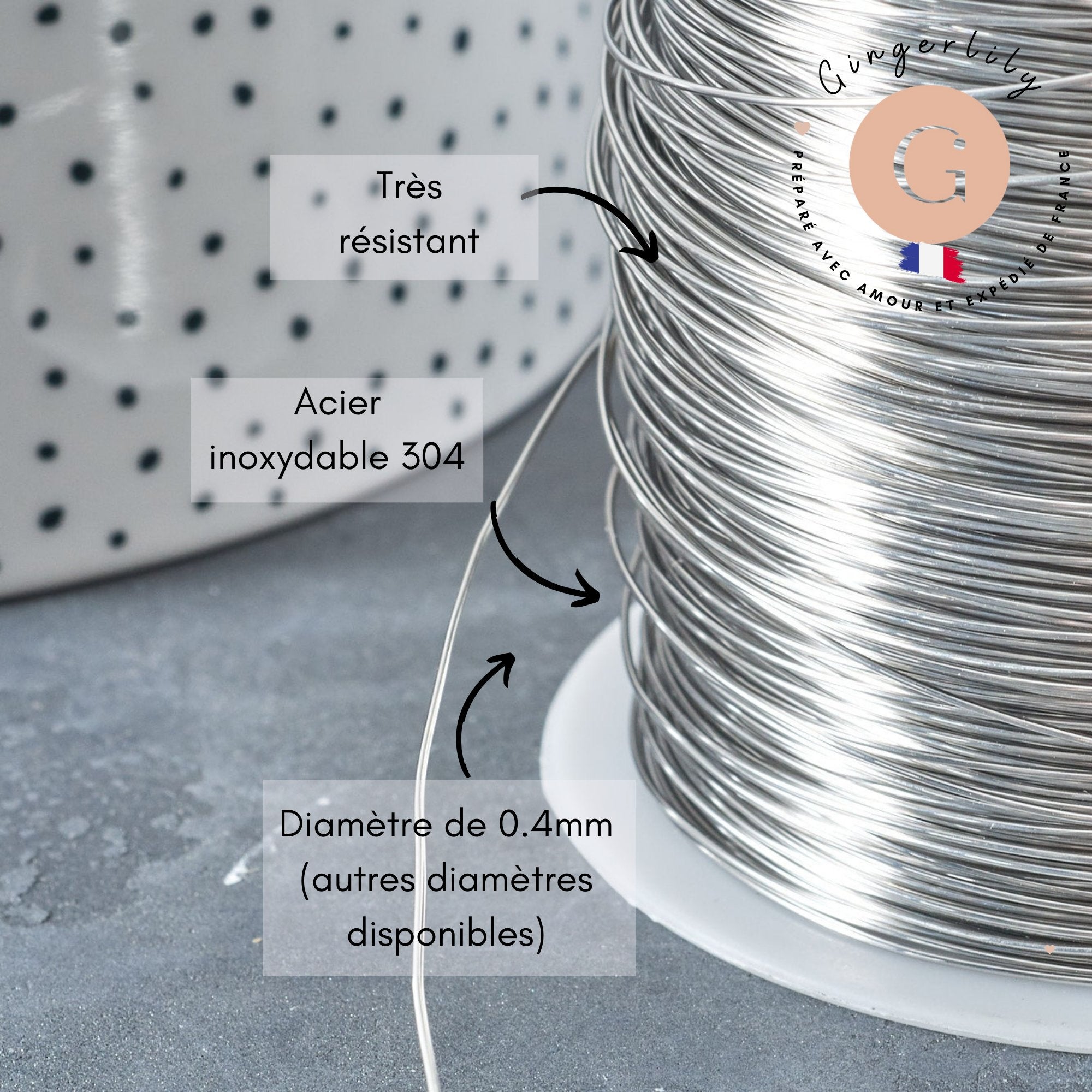 Fil d'acier 304 inoxydable platine argenté 0.4mm, x1 mètre (G8847)