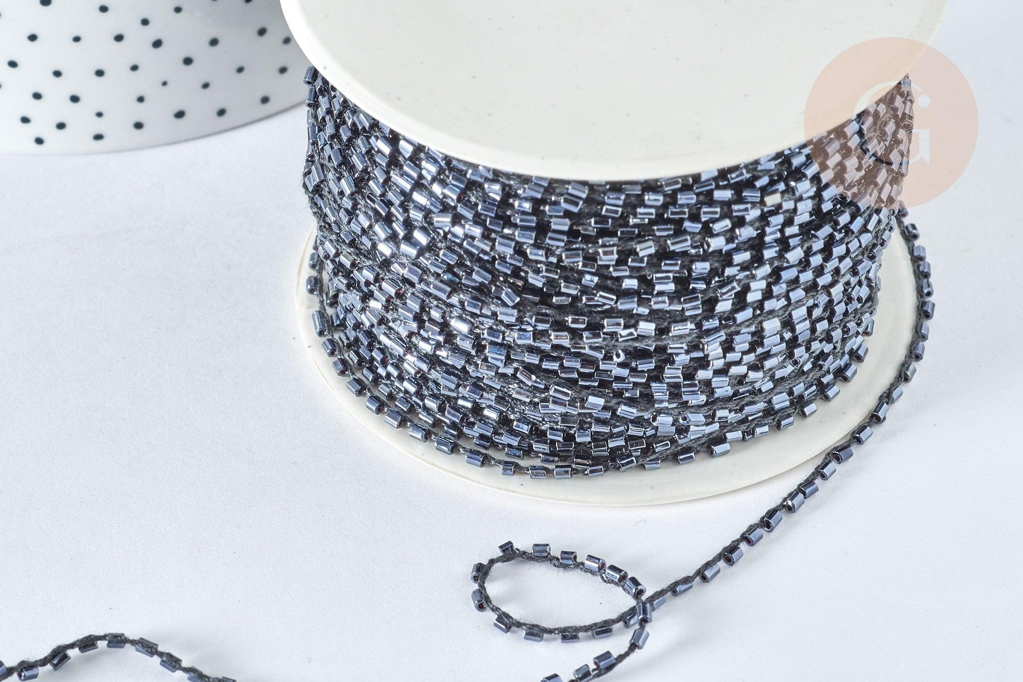 te ofrecemos este cordón de perlas negras iridiscentes para realizar tus bisutería, complementos, bolsos y ropa o para scrapbooking y otras aficiones creativas,