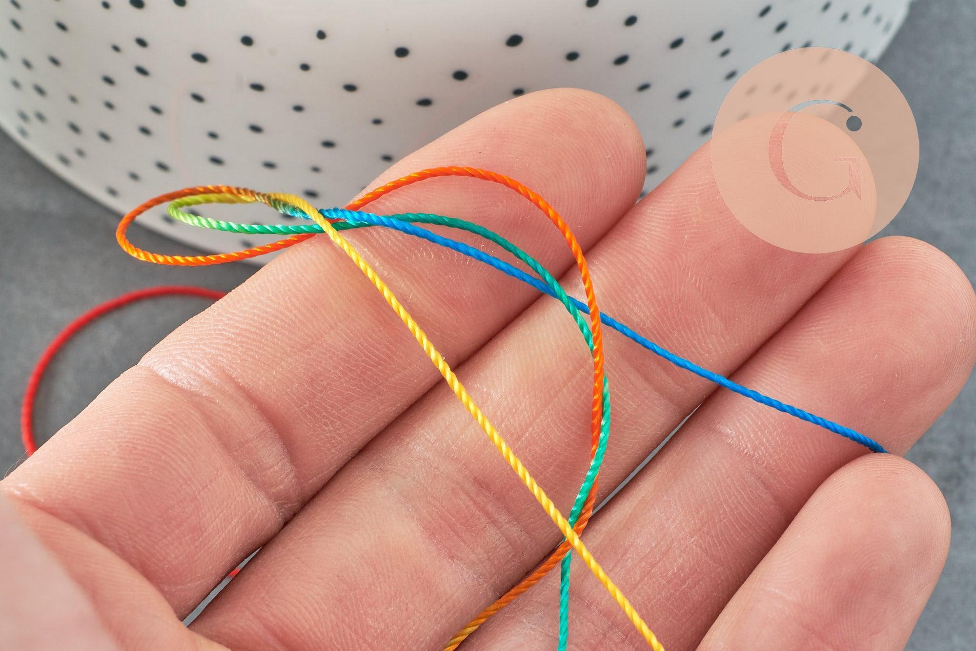 Un bonito hilo de nailon multicolor para tus creaciones de joyería, accesorios, costura o bordado.