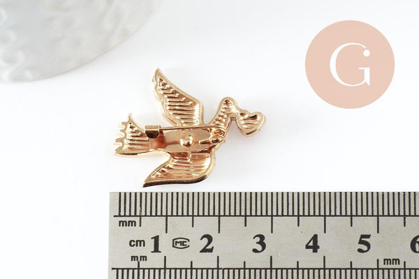 Broche paloma blanca con corazón rojo en zamac bañado en oro 29mm, x1 (G9460)