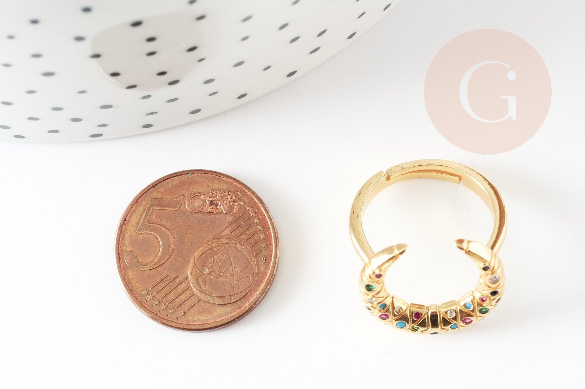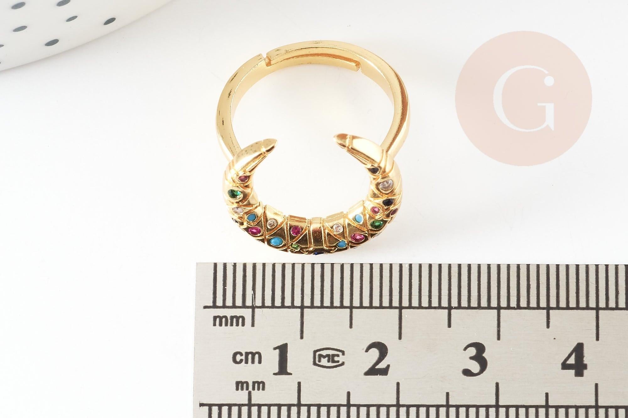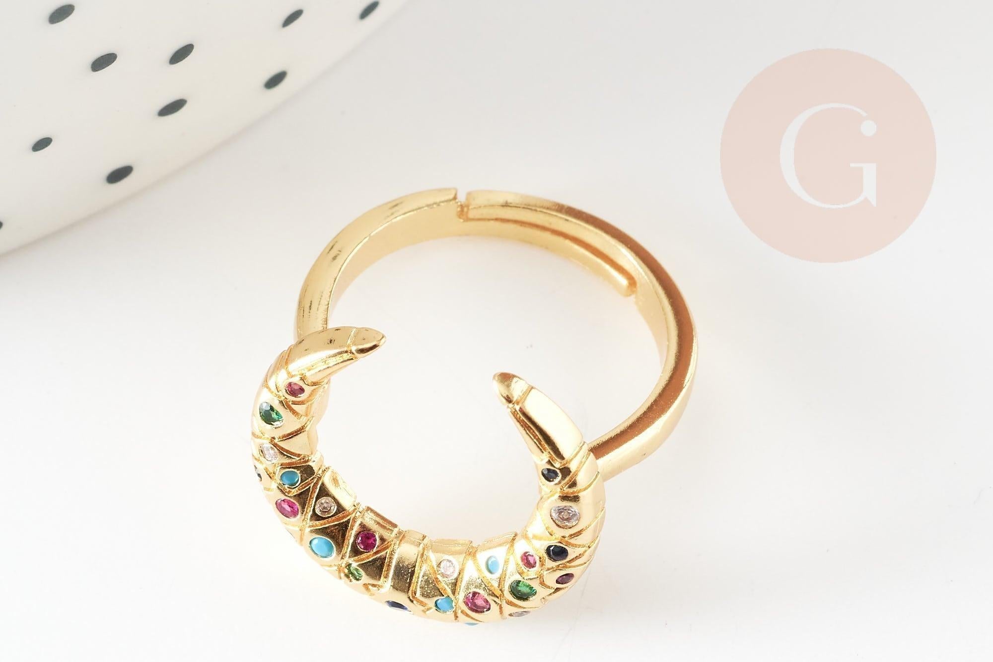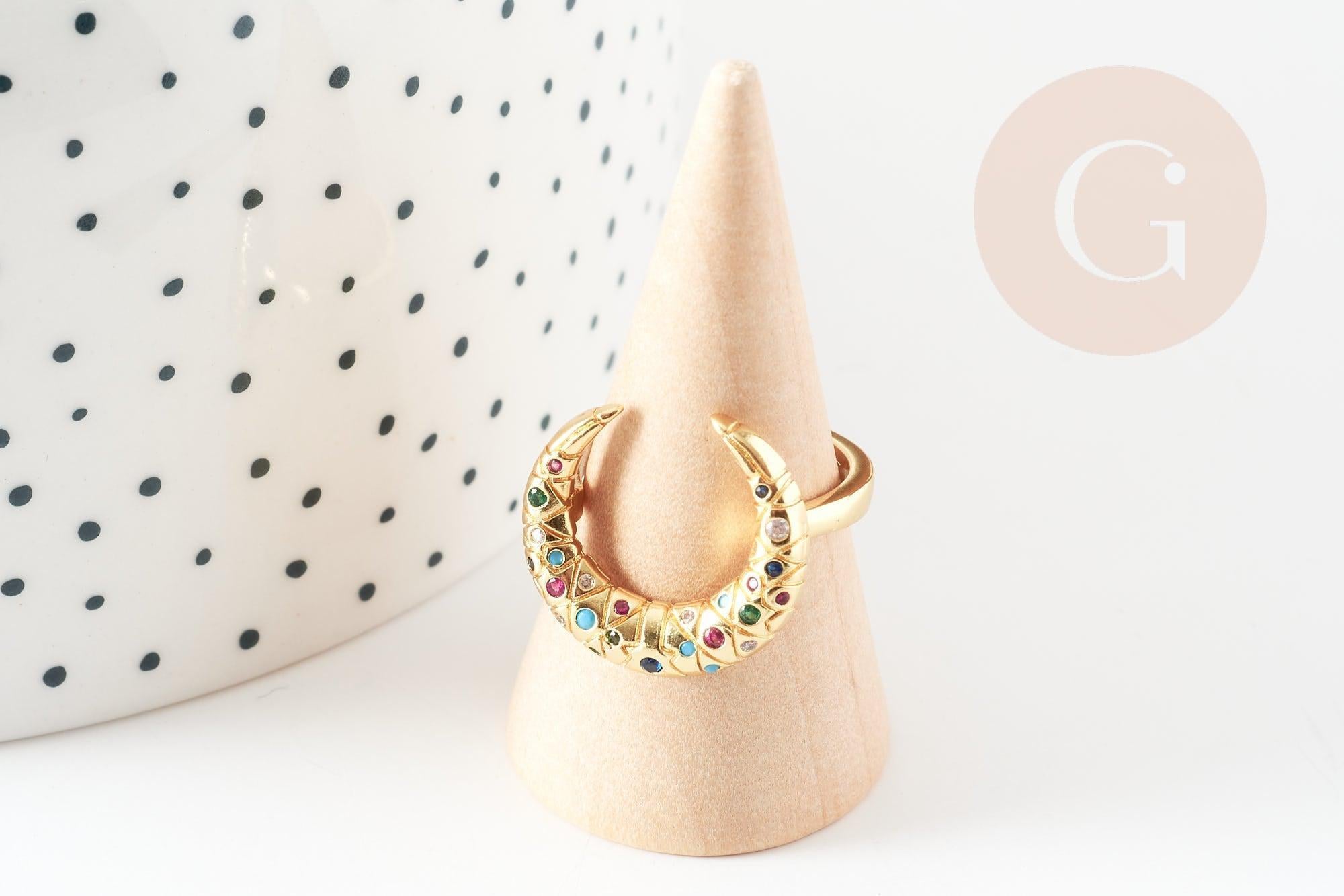 Anillo de latón bañado en oro con luna de circonitas de colores, creación de joyas, anillo de mujer regalo de cumpleaños, soporte de anillo de latón bañado en oro, 17 mm, unidad