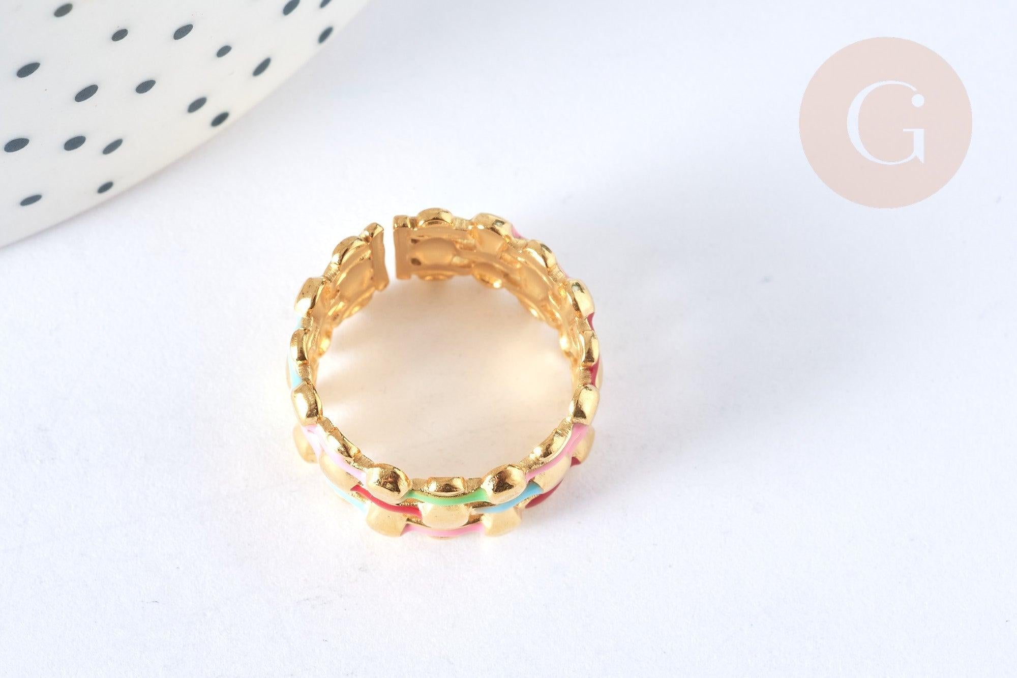 Precioso anillo de malla cruzada esmaltado con resina multicolor, ajustable en acero inoxidable . Una pieza de joyería atemporal y muy chic que te acompañará todos los días.