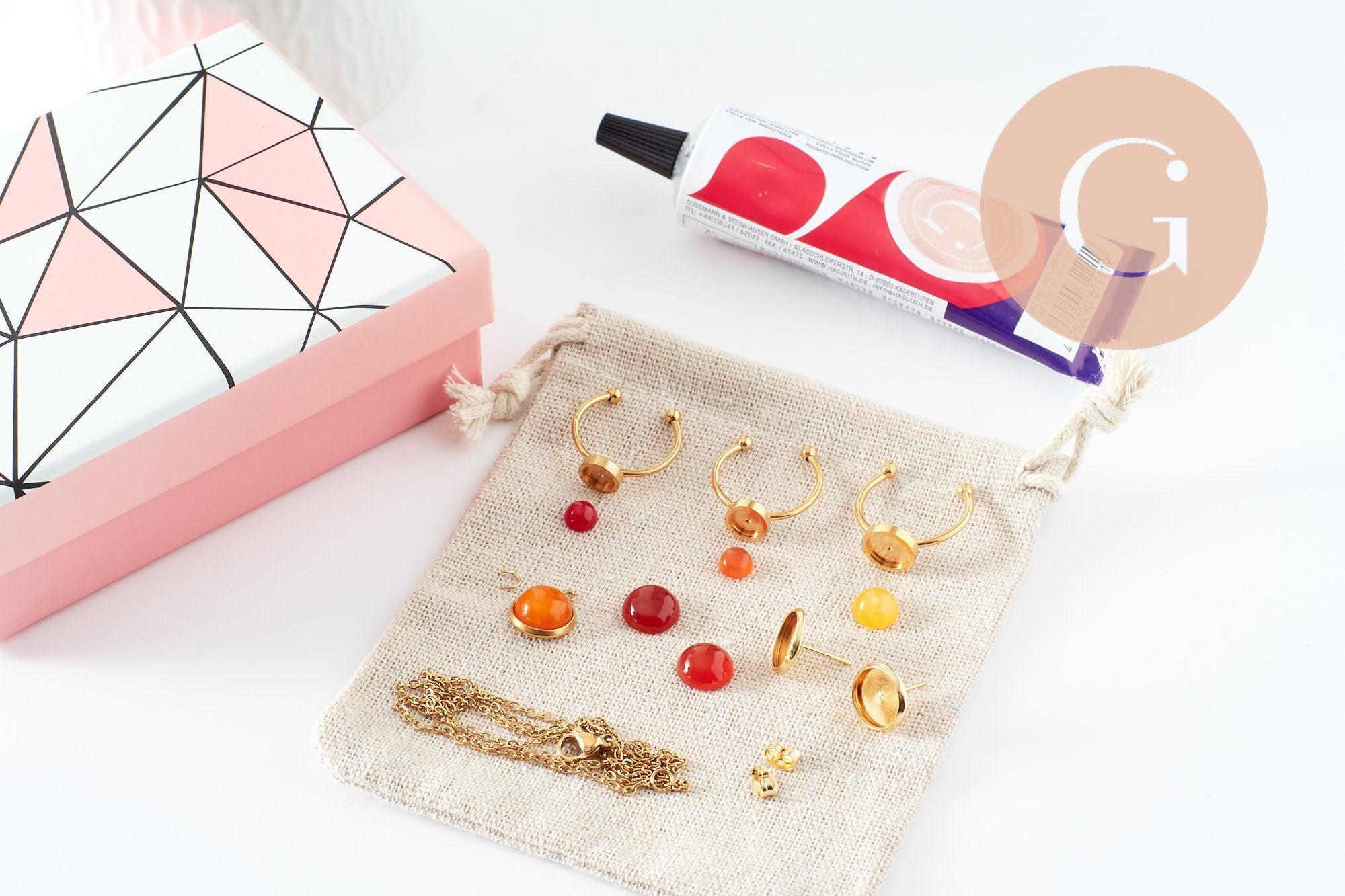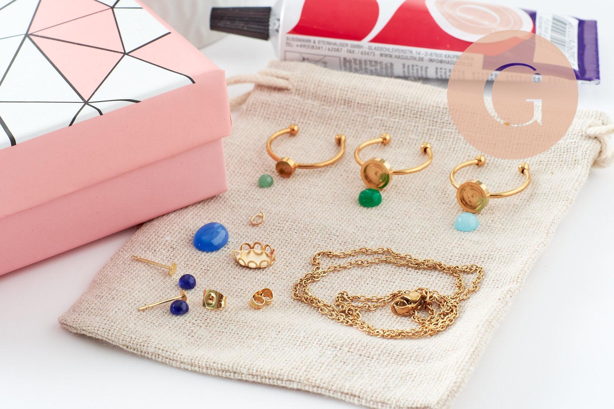 Kit de joyería con cabujón de piedra natural, Cajas y kits para crear bisutería DIY, x1 (G9557)