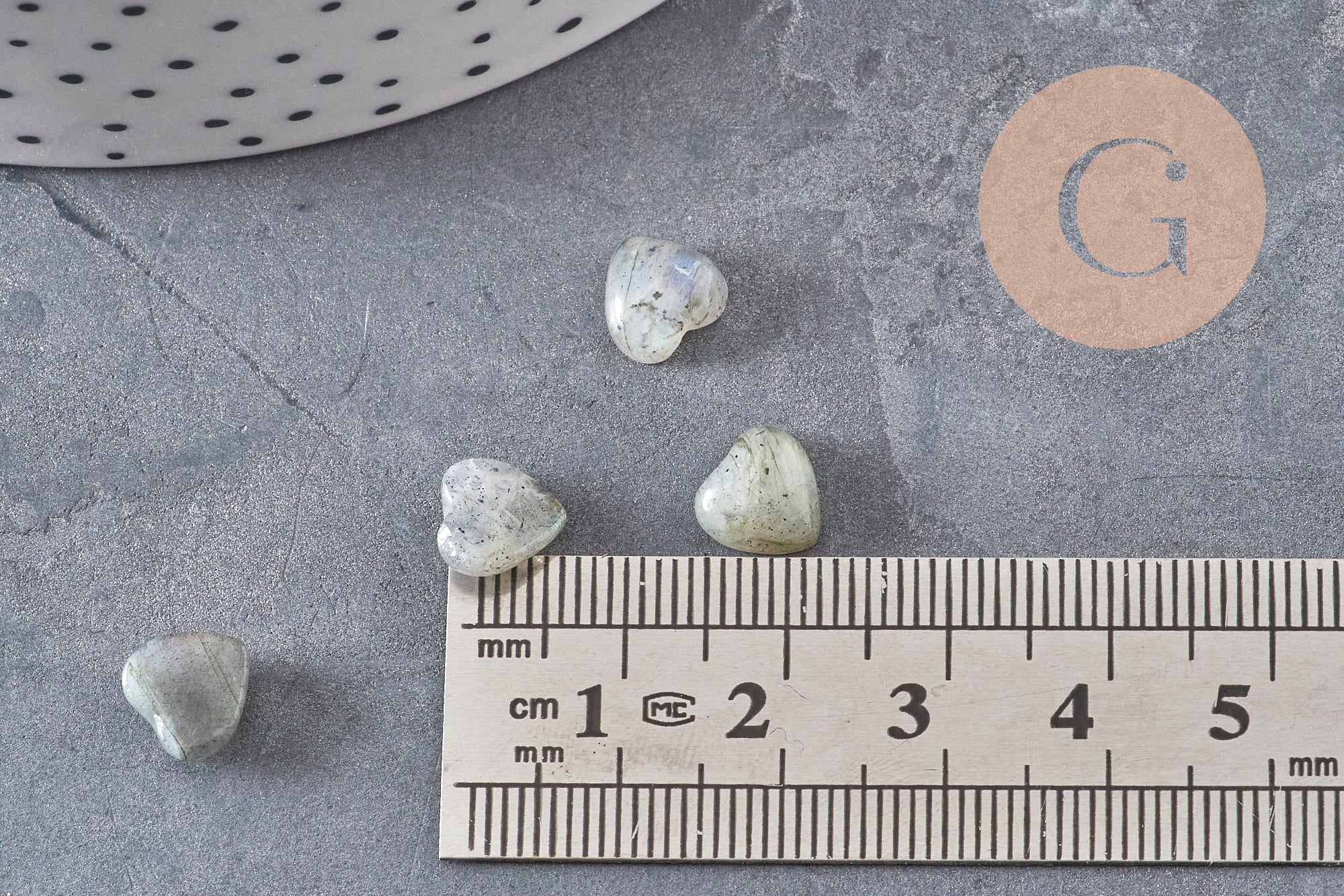 Cabujón de corazón de labradorita natural de 8×8 mm, ideal para crear joyas DIY simbólicas, protectoras y únicas.