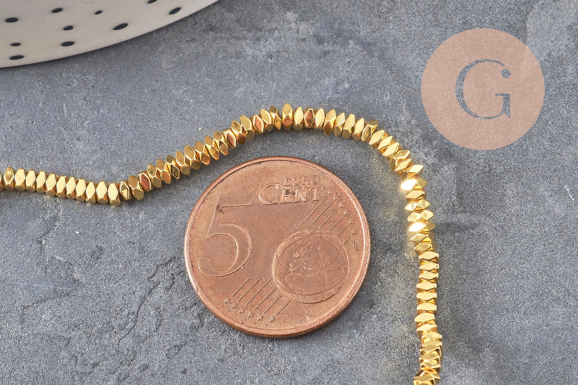 Perle rondelle carrée hématite de synthèse dorée 2mm, x1 fil de 40cm (G11060)