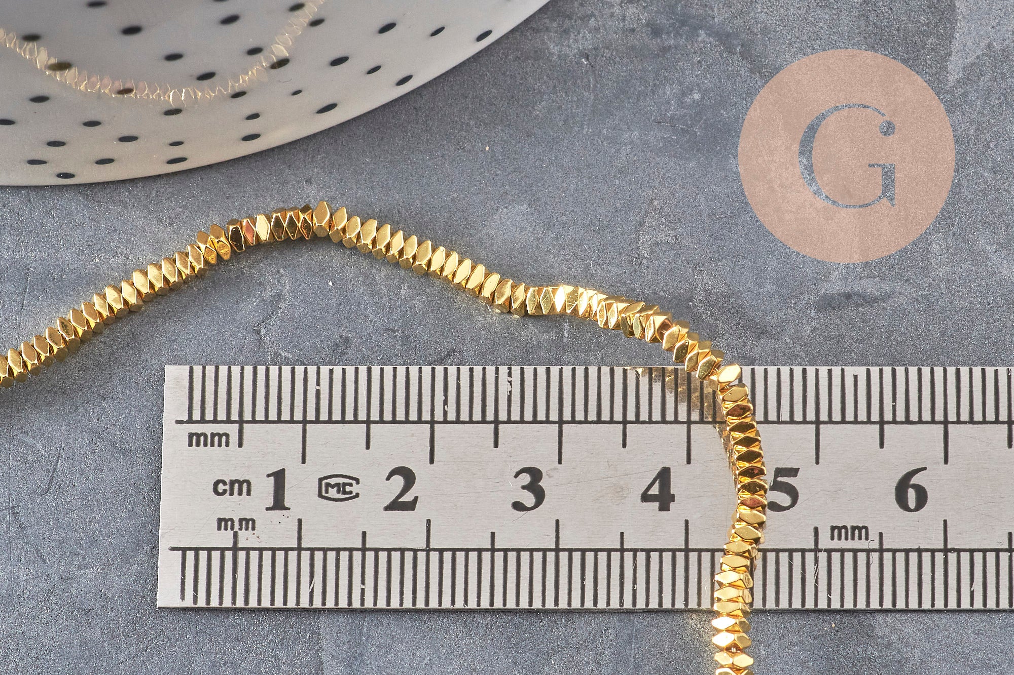 Cuentas cuadradas de 2mm de hematita sintética dorada, ideales para crear joyería DIY fina, gráfica y minimalista.