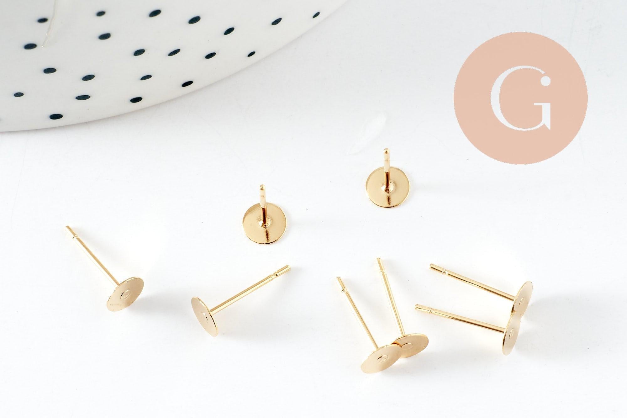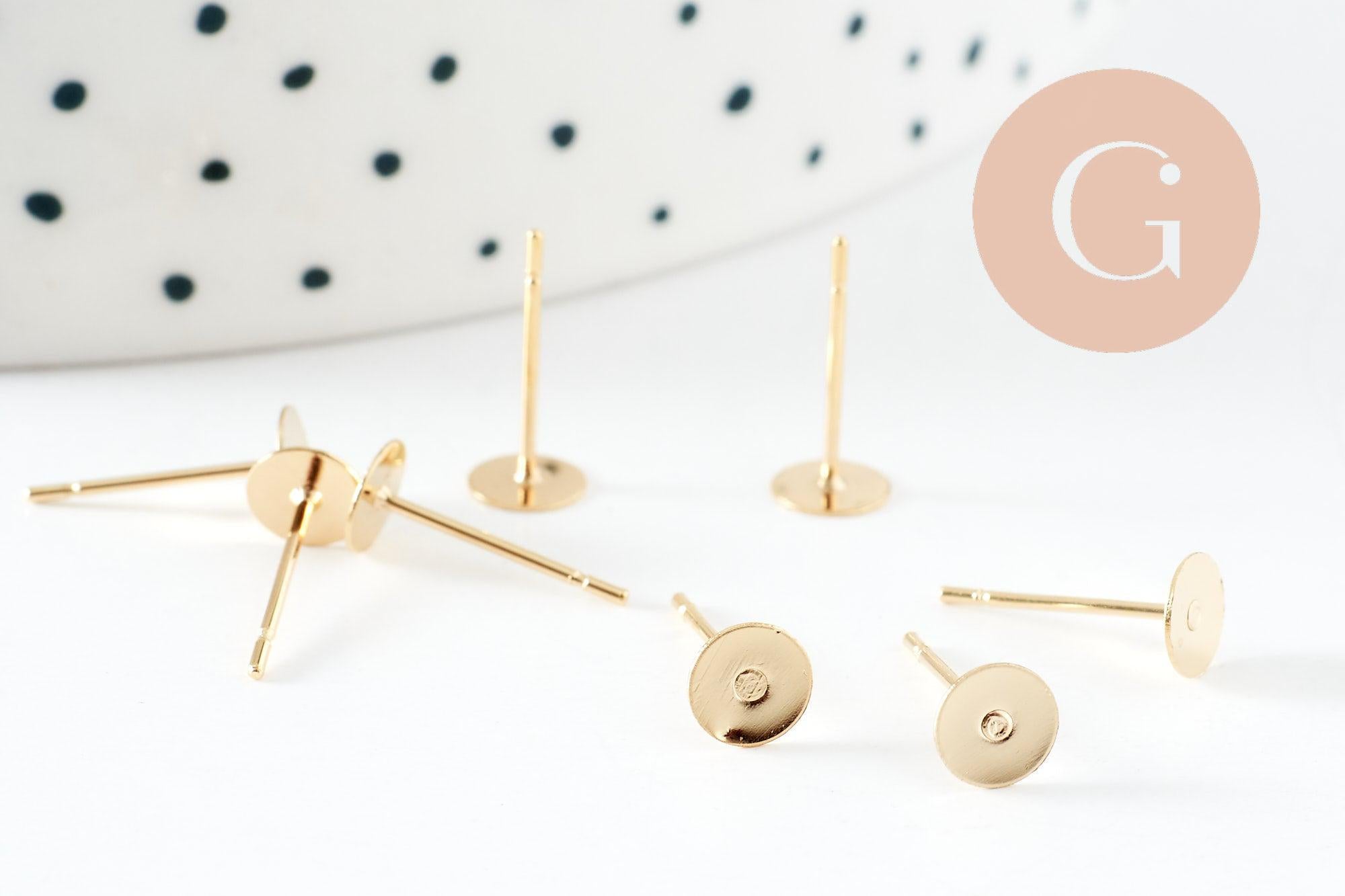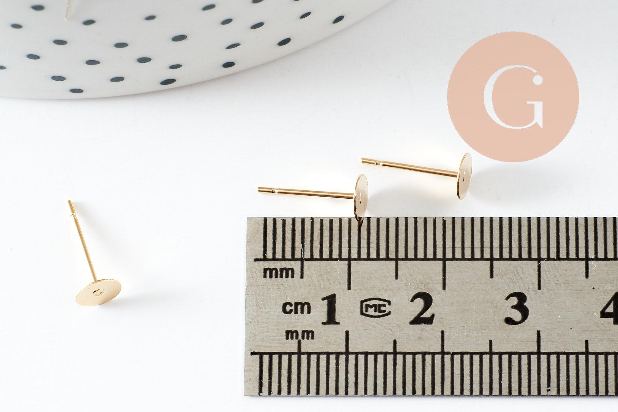 Clous-puces oreille avec plateau acier inoxydable 304 doré 5mm, x10 (G9727)