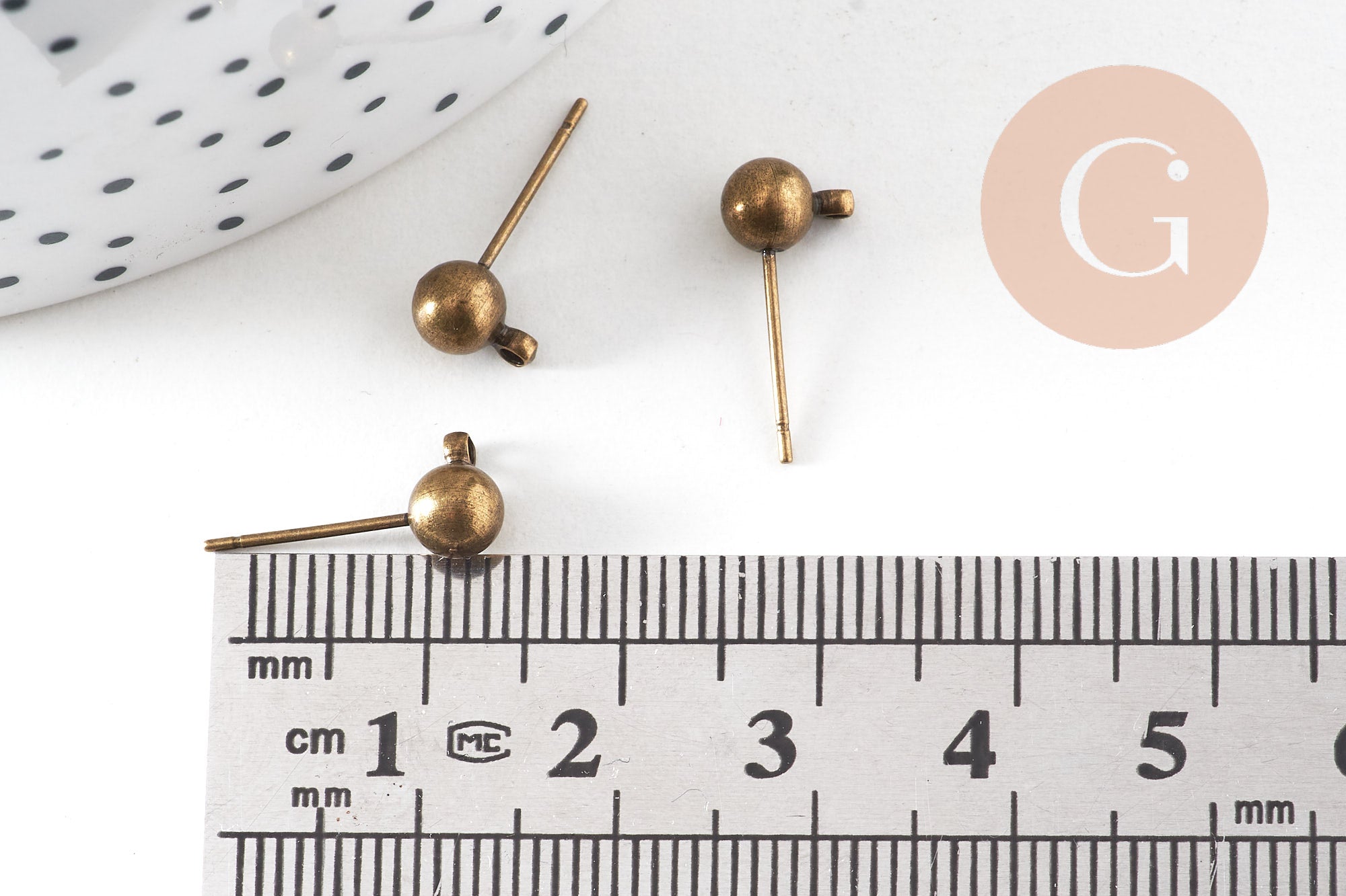 Pendientes de bola de bronce con aro, para oreja perforada, diámetro 5 mm, x 10 (G0647)
