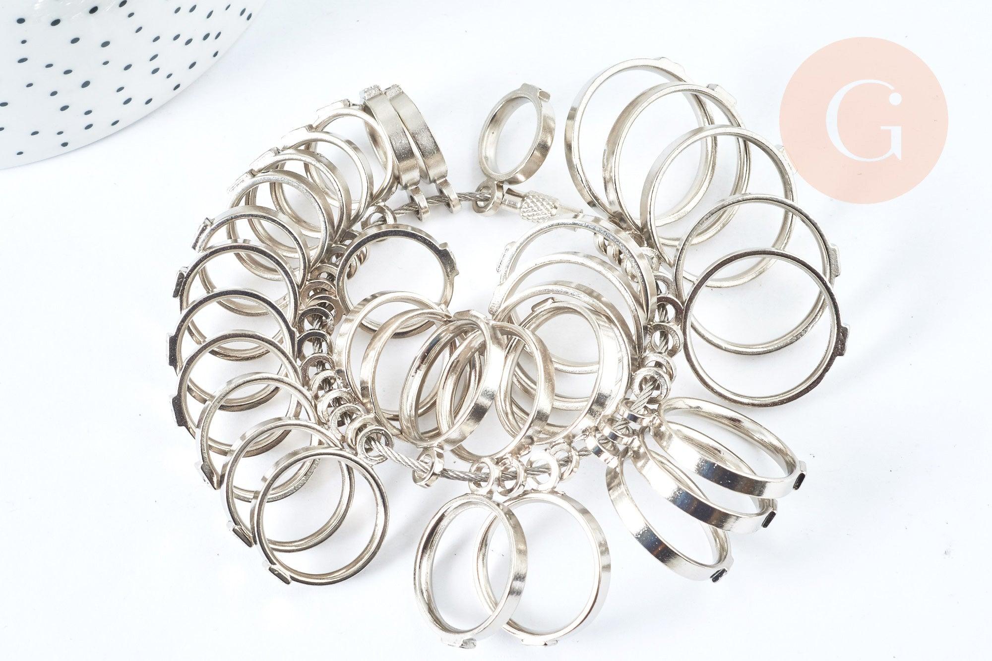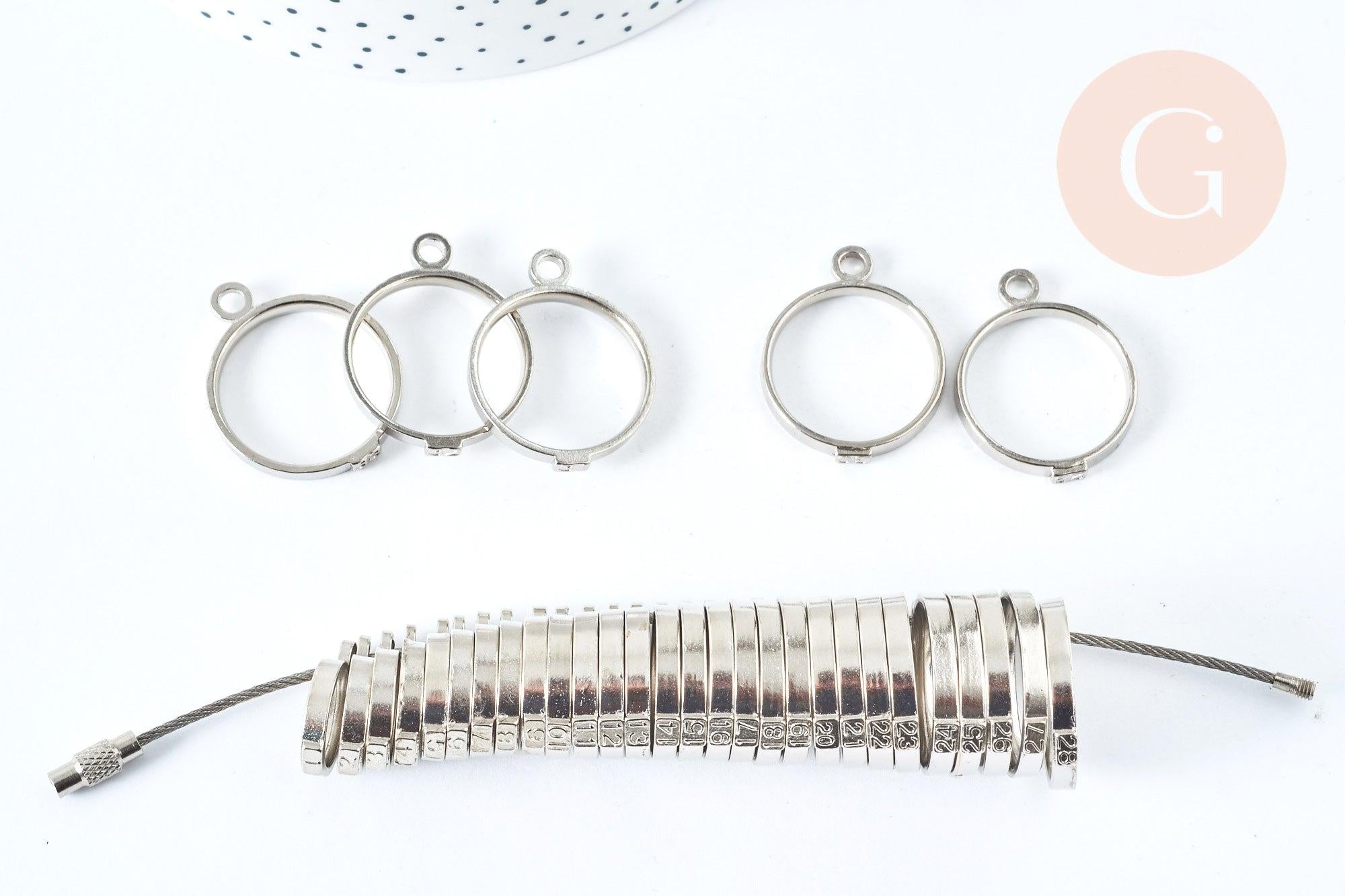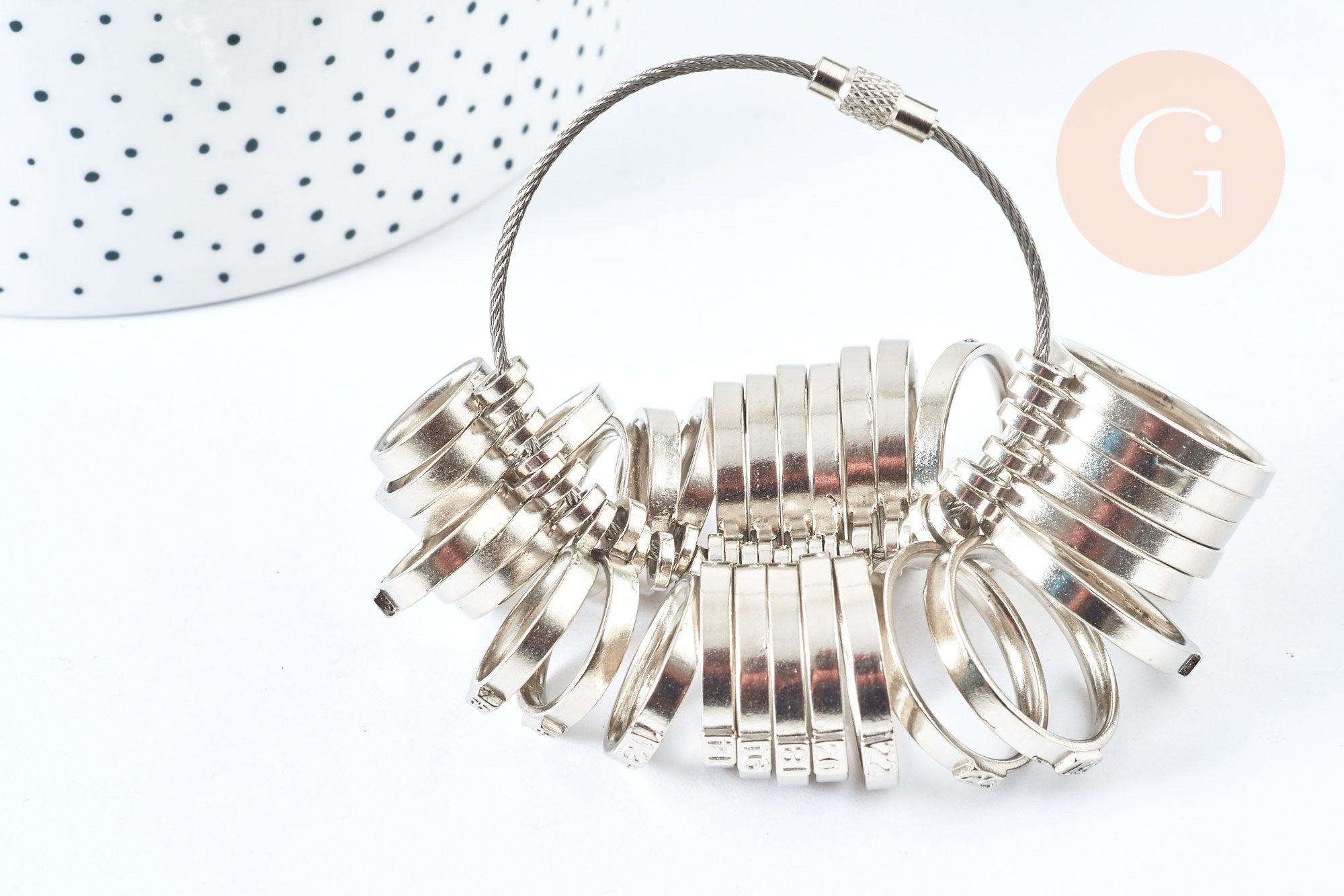 ¿Tienes anillos para hacer en tu taller? Este medidor de anillos, en metal plateado, está hecho para ti. Esta es una herramienta utilizada para encontrar el tamaño exacto de un anillo.