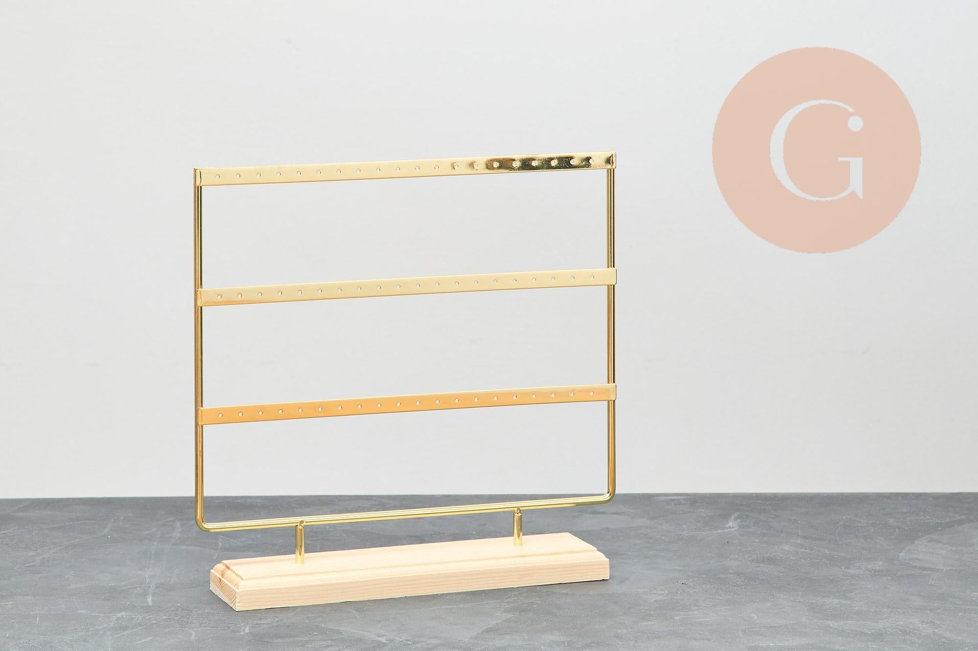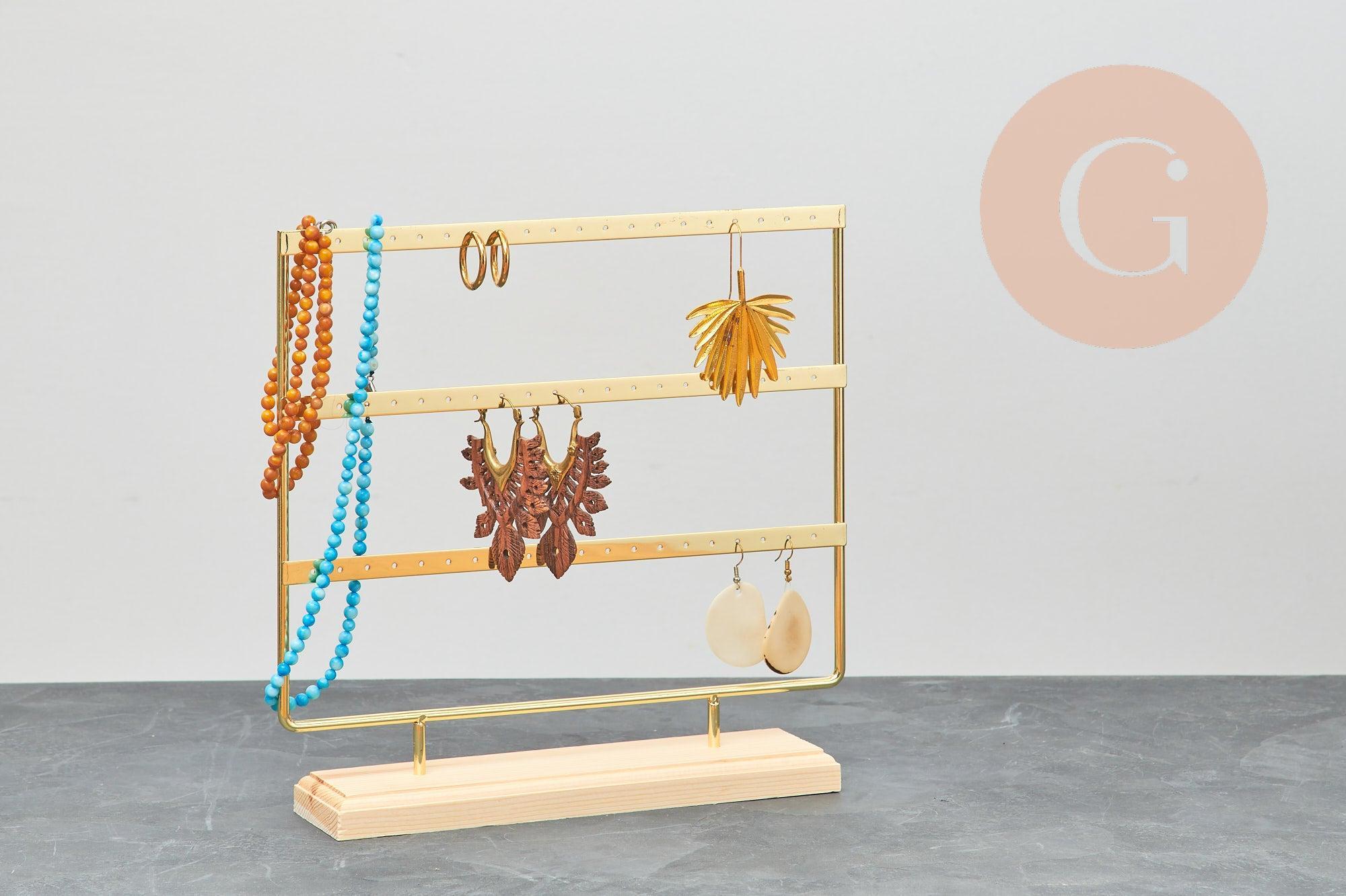 ¿Has creado muchísimas piezas de joyería este año y no sabes dónde guardarlas ? ¡No busques más! Este expositor de latón dorado y madera será perfecto para exhibir tus joyas.