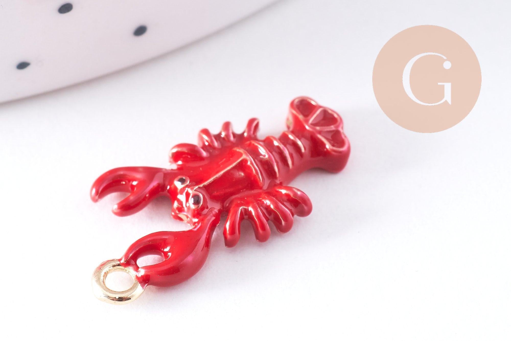 Dale un toque marinero y original a tus joyas con este colgante de langosta de esmalte rojo en zamac bañado en oro . Su color brillante y su forma original lo convierten en el accesorio ideal para creaciones veraniegas, divertidas o temáticas .