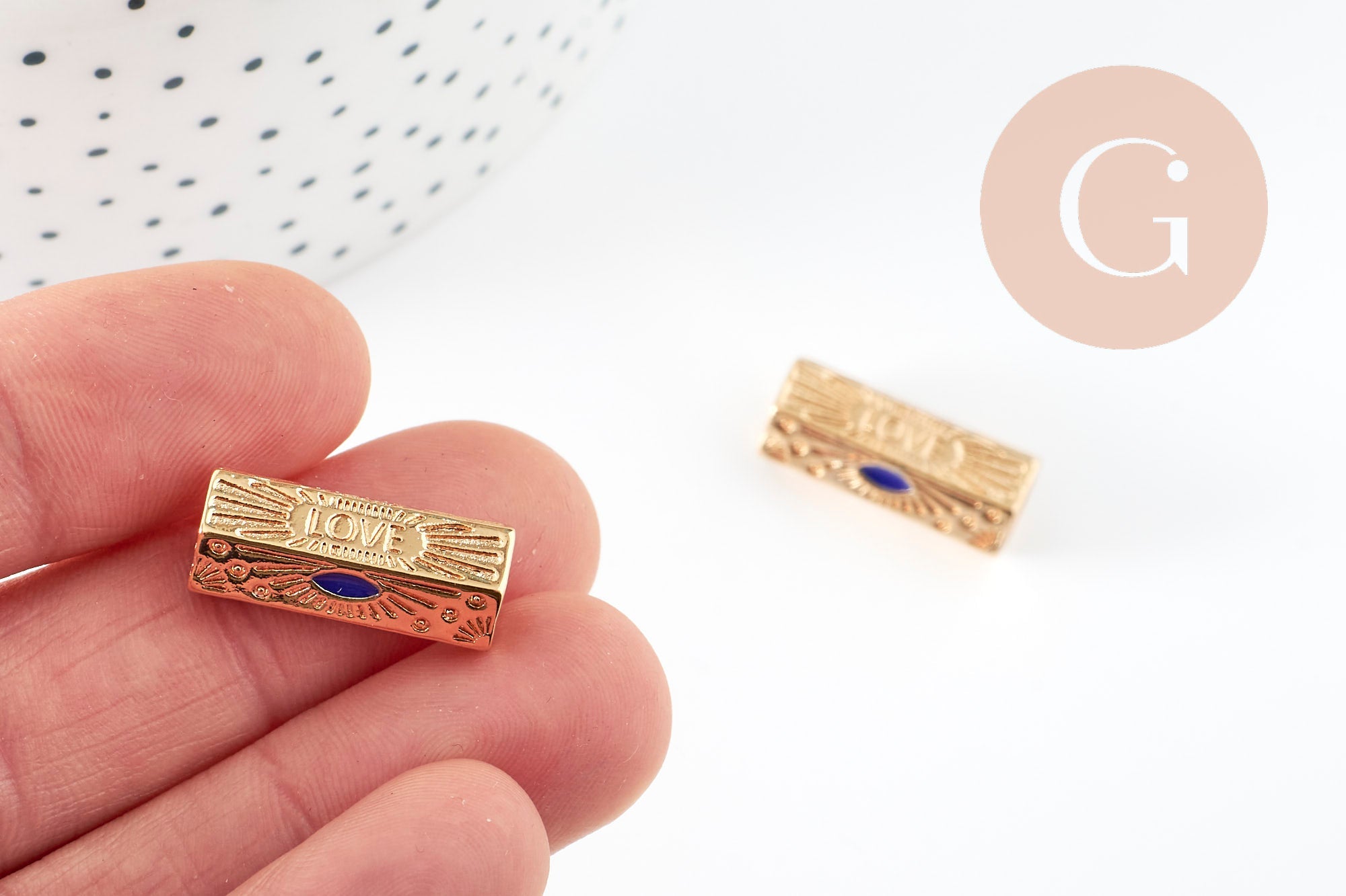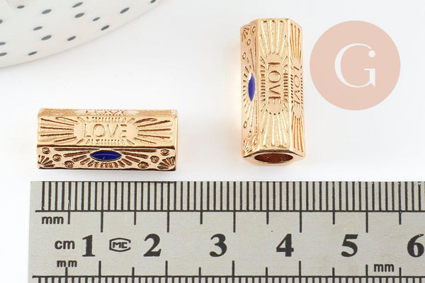 Cuenta de tubo talismán Mensaje de AMOR color azul dorado 21 mm, cuenta de joyería de amor dorado, x1 G9408