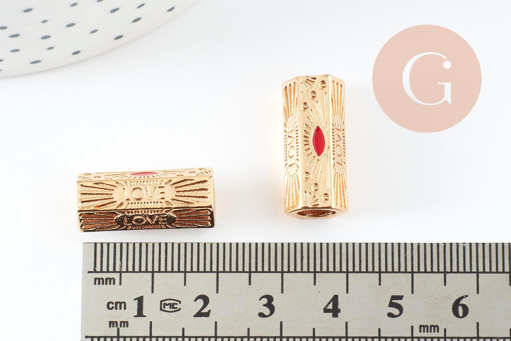 Perle tube talisman message LOVE doré couleur rouge 21mm, perle dorée bijoux amour, x1 G9409