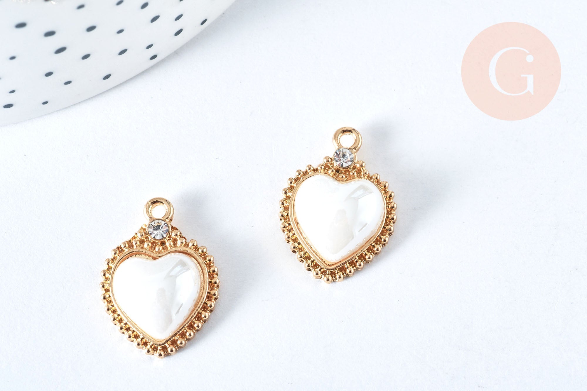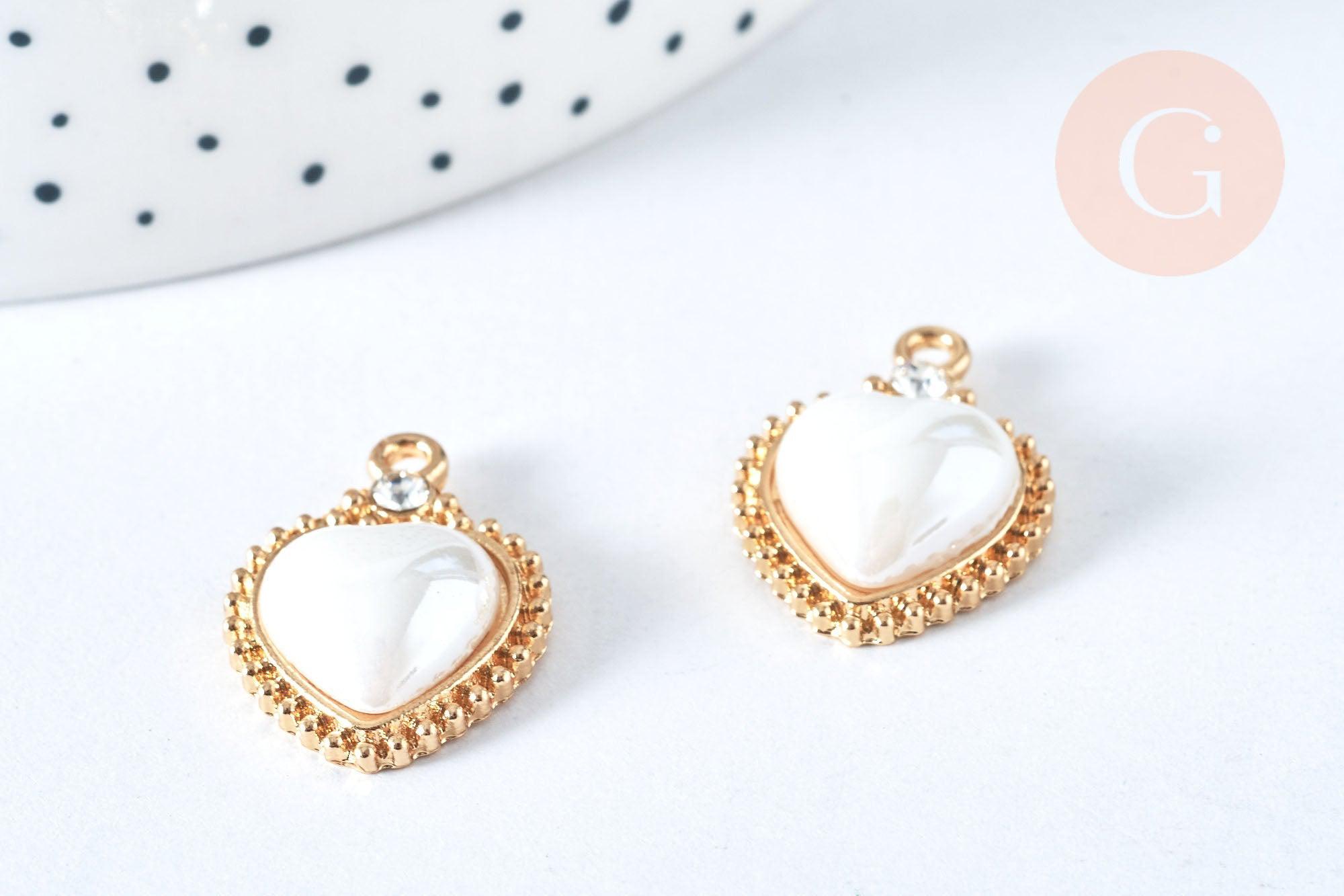 Colgante de corazón de porcelana con pedrería blanca, latón dorado de 18 quilates, 23 mm, cuenta de porcelana de corazón para la fabricación de joyas, x1 G6973