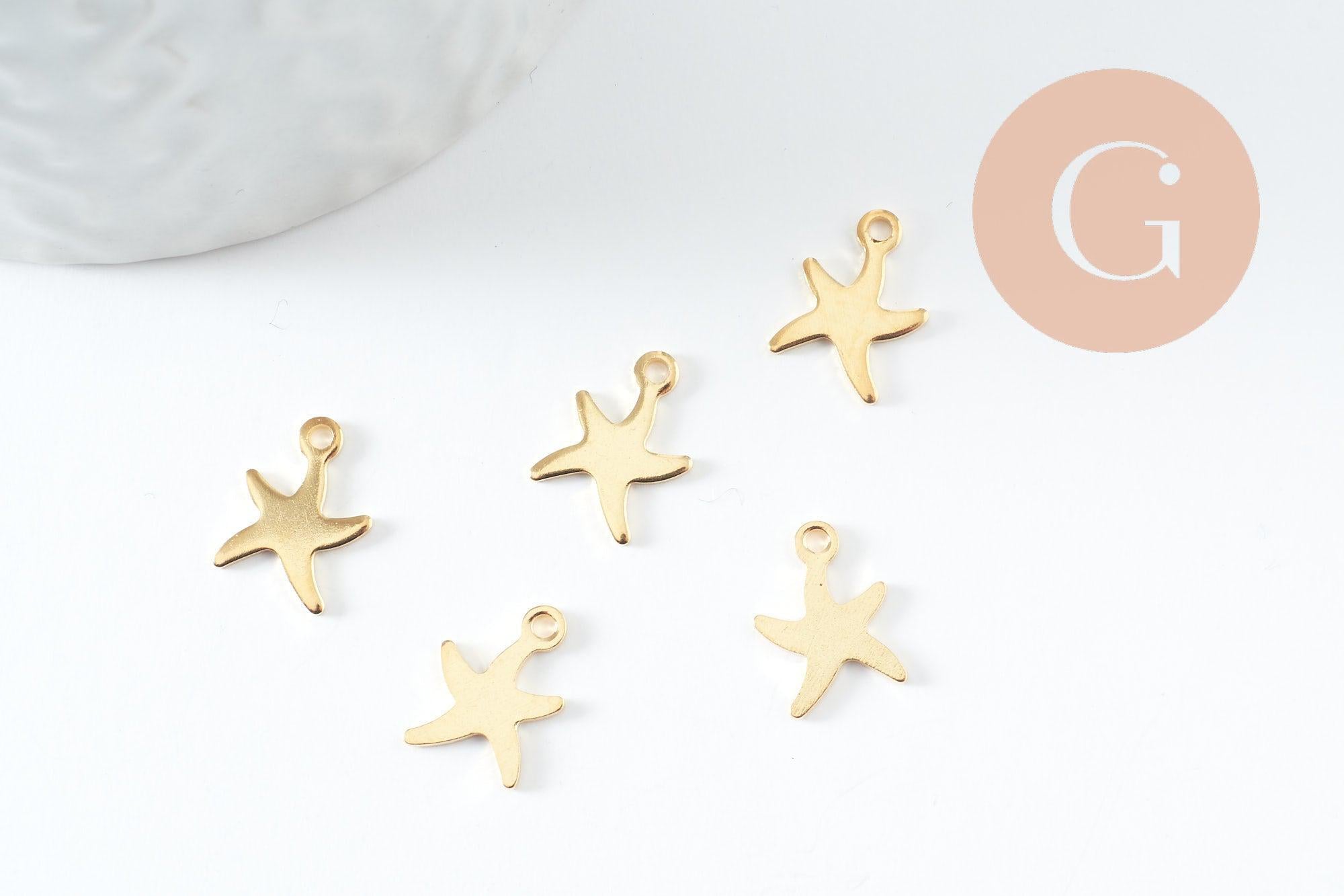 Colgante de estrella de mar dorada de acero inoxidable 304 de 11 mm (5 unidades) (G10015)
