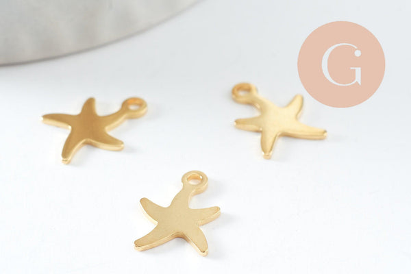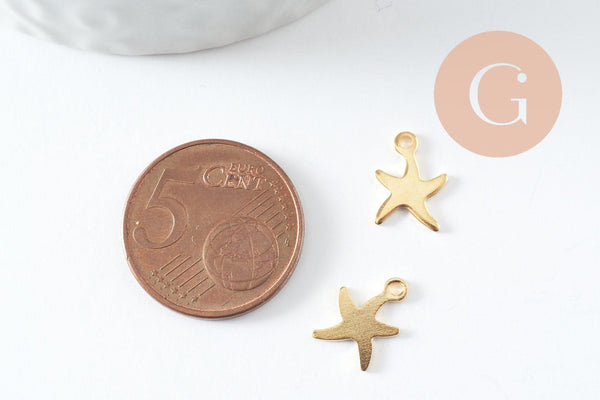 Pendentif acier 304 inoxydable doré étoile de mer 11mm, x5 (G10015)
