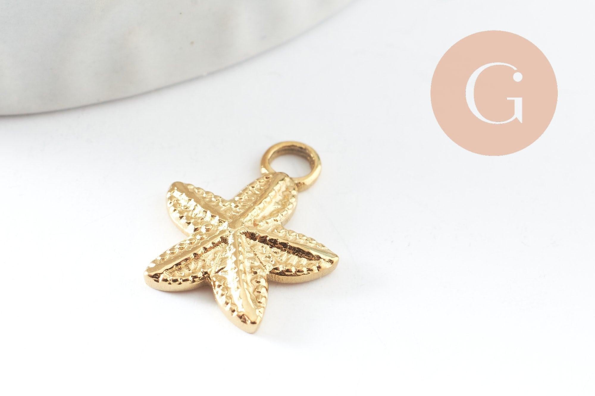 Colgante de estrella de mar en acero inoxidable 304 IP dorado de 15,5 mm, x2 (G9855)