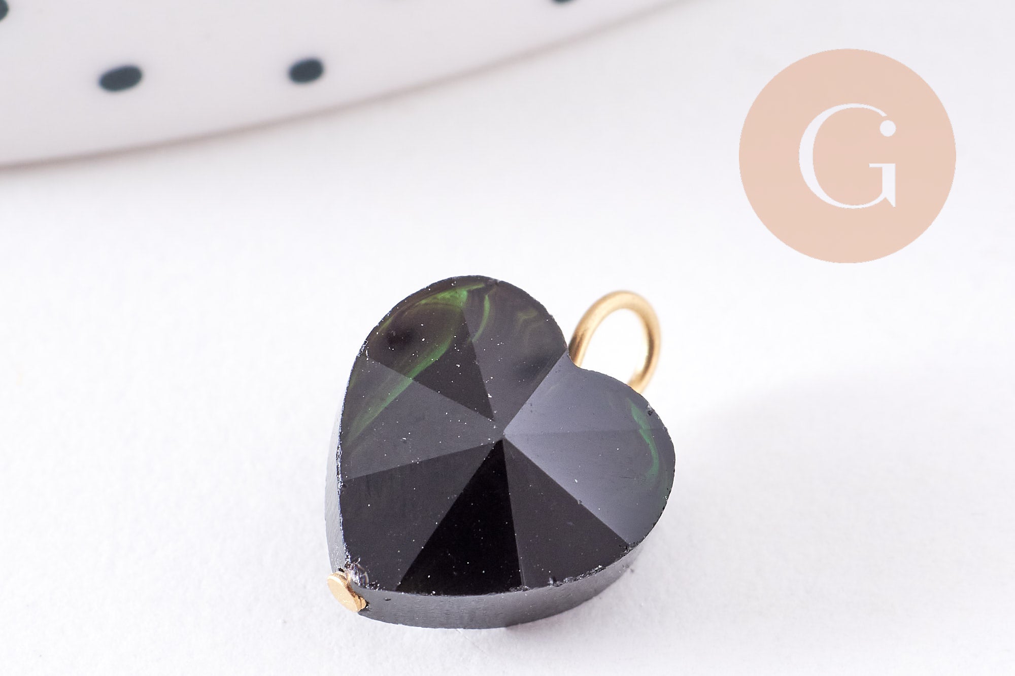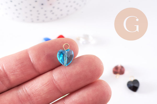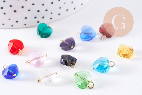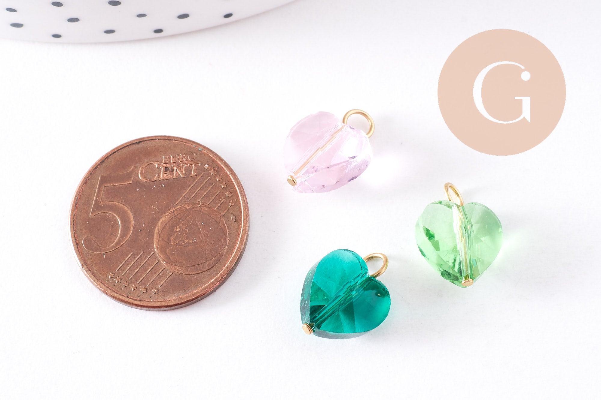 Colgante de corazón de cristal facetado de colores en acero inoxidable 304 dorado de 14 mm, x1 (G10710)