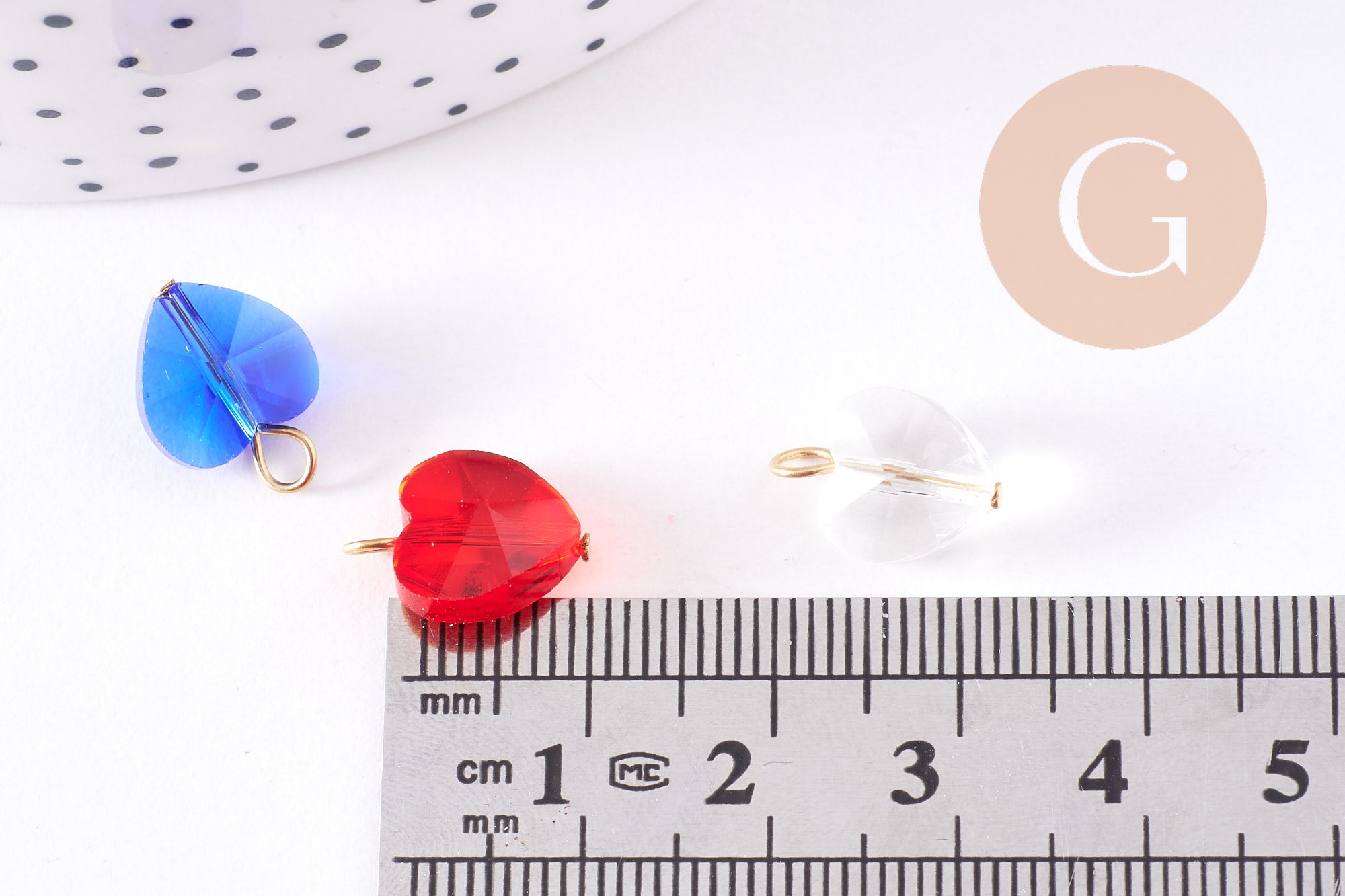 Déjate seducir por este pequeño colgante en forma de corazón de cristal facetado de colores , montado sobre una varilla de acero inoxidable 304 bañada en oro. Su discreto tamaño y sus reflejos luminosos lo convierten en una pieza ideal para joyería fina, romántica y elegante.