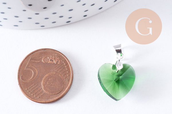Dale un toque de color y luz a tus creaciones con este bonito colgante de corazón facetado . Hecho de vidrio de colores con vibrantes reflejos, está montado sobre un asa de hierro plateado lista para usar.